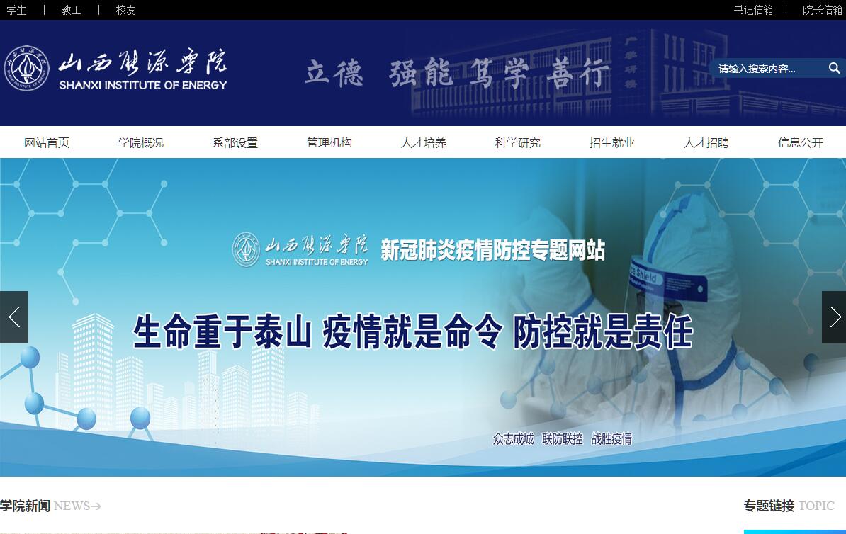 山西能源学院是教育部批准,山西省人民政府举办的一所应用型普通本科学校。学院以煤炭、电力、新能源类专业为主体,主要培养基础理论系统全面,专业技能突出,实践动手能力强,为能源企业服务,为区域dm21.jpg经济社会发展服务的工程技术人才和管理人才。目前,学院已被列为山西综改试验区重点建设项目、山西省应用型本科试点院校、全国地方高校“产教融合”建设试点院校。学院有两个校区,分别位于学风浓郁的山西省高校园区和高新技术密集的太原市小店区,校园总占地面积约760亩,校舍建筑面积约19万平方米,教学科研仪器设备值约1亿元,纸质图书48万余册,电子图书21万册,校内实验实训室87个,校外实习基地63个。现有全日制本、专科在校生7200余人。设有矿业工程系、安全工程系、地质测绘工程系、机电工程系、电力工程及其自动化系、能源与动力工程系、资源与环境工程系、新能源工程系、计算机与信息管理系、经济系、管理系、思想政治理论课教学部、基础教学部、继续教育部等14个教学系部。近年来,学院紧密对接山西战略性新兴产业和重点建设的产业集群,以“1331工程”优势特色学科动力工程及工程热物理建设为重点,全面推进能源动力类、新能源开发利用类、智慧能源类、资源环境类、绿色能源智能装备制造类、能源经济管理类六大专业群建设,在首批6个本科专业机械设计制造及其自动化、电气工程及其自动化、资源勘查工程、采矿工程、化学工程与工艺、安全工程基础上,增设了能源与动力工程、能源与环境系统工程、新能宿舍.jpg源材料与器件、新能源科学与工程、机械电子工程、环保设备工程、城市地下空间工程、测绘工程、油气储运工程、车辆工程、信息管理与信息系统、财务管理、能源经济、金融工程14个本科专业,本科专业达到20个,面向山西、河南、山东等10省份和地区招生。其中,能源与动力工程为山西省高校优势特色专业,能源与动力工程、电气工程及其自动化为二本A类专业。“产教融合、校企合作”是学院培养高质量应用型人才、实现特色办学的重要途径。在学院筹建过程中,山西省大型能源企业为学院捐资助学1.9亿元,大力支持学院实验室、实训基地的建设。学院建立以来,与省内外33家能源及相关企业、科研院所签署了战略合作协议,就创新型人才和应用型人才培养、科技创新能力的提升、科技成果的转化,以及学生就业创业等工作开展深度合作,同时加强与各高级中学的交流合作,在省内20多家知名高级中学建立了生源基地,努力吸引更多优秀学子投身到能源及其相关行业。学院坚持办学以学生为根本,不断提高从招生到就业全过程的学生教育、管理和服务水平。大力加强学风建设,营造勤奋刻苦、自律主动的学习氛围。努力构建基础教学和实践能力并重的培养机制,在提高学生实践能力的同时,提高高等数学、大学英语等基础课教学质量。开展丰富多彩的校园文化活动,搭建学生广泛参与的课外科技及文体活动平台。认真地开展学生创业教育、就业指导与服务等工作,专家论证.jpg积极寻求政府和企业支持,拓宽学生就业的渠道,为学生未来深造、考研和就业创造更好条件、奠定坚实基础。2018年,学院首批6个专业400余名本科毕业生中,有70多名同学达到国家考研录取线,被北京航空航天大学、北京理工大学、重庆大学、吉林大学、中国地质大学、中国海洋大学、中国矿业大学等学校录取。学院大力加强科研工作,努力为能源行业转型发展提供科技支撑和决策咨询,纵向科研项目涵盖科技厅、社科联、教育厅和发改委,与企业签订多项横向项目,目前承担着“山西能源转型战略”等重点项目。学院在开展全日制学历教育的同时,还面向社会开展成人学历教育,面向企事业单位和社会开展培训和服务,目前承担着山西煤矿安全技术培训、工商管理培训、省中小企业局中小微企业创新创业能力提升等培训任务。习近平总书记强调,高等教育发展水平是一个国家发展水平和发展潜力的重要标志,我们对高等教育的需要比以往任何时候都更加迫切,对科学知识和卓越人才的渴求比以往任何时候都更加强烈。面对山西建设示范区、打造排头兵、构建新高地的三大战略目标,山西高校肩负的责任也比以往更加艰巨。作为能源类本科院校,山西能源学院更感责任重大。 学院将以党的十九大精神和习近平新时代中国特色社会主义思想为指引,在省委省政府的坚强领导下,在企业、社会的大力支持下,以更加统一的思想、更加有力的举措、更加坚定的意志,全面推进特色鲜明的应用型普通高等学校建设,为高等教育的改革、能源革命的推进、经济社会的发展作出新的贡献。