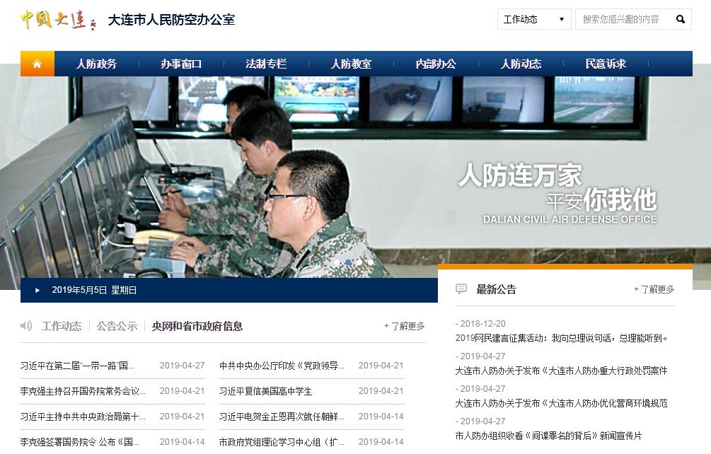 根据《中共辽宁省委办公厅 辽宁省人民政府办公厅关于印发<大连市人民政府职能转变和机构改革方案>的通知》(厅秘发〔2014〕22号)精神,设立大连市人民防空办公室,挂大连市民防办公室牌子,正局级建制,为市政府工作部门。其主要职责是:(一)贯彻执行国家、省关于人民防空(民防)工作的方针政策和法律法规;拟订人民防空有关政策,起草人民防空(民防)地方性法规草案和市政府规章,并组织实施。(二)负责组织编制防空袭预案及其保障计划。(三)拟订人民防空建设发展规划;会同有关部门编制人民防空与城市建设相结合的地下空间开发利用规划,并监督实施。(四)负责人民防空工程建设审批、质量监督、维护管理和使用。(五)负责人民防空指挥通信、警报系统的规划建设和维护管理。(六)负责人民防空(民防)宣传教育、训练、演习演练和群众防空组织建设工作。(七)会同有关部门规划建设人口疏散地域和疏散基地;指导监督重要经济目标防护工作。(八)组织、指导、协调、监督人民防空行政执法工作。(九)管理人民防空经费和资产。(十)负责开展人民防空(民防)科学技术研究交流和成果应用工作;负责人民防空(民防)信息采集,为政府决策提供信息保障。(十一)承办市政府赋予的应对突发公共事件的有关保障任务。(十二)承办市政府和市国防动员委员会交办的其他事项。