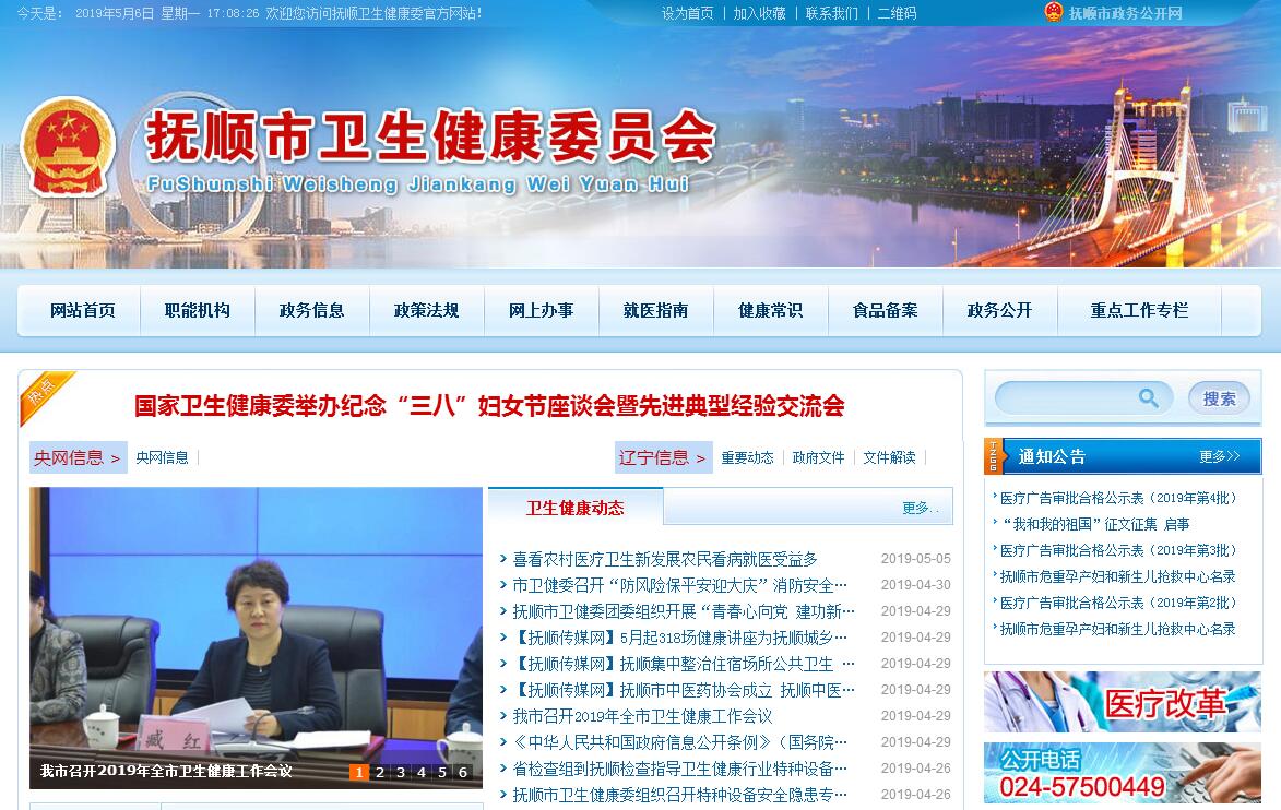 抚顺市卫生健康委员会主要职责:(一)贯彻执行国家卫生和计划生育、中医药事业发展的法律、法规和方针、政策,组织起草相关的地方性法规和规章草案,监督实施政策规划、地方标准和技术规范。负责协调推进全市医药卫生体制改革和医疗保障,统筹规划卫生和计划生育服务资源配置,指导区域卫生和计划生育规划的编制和实施。(二)负责制定疾病预防控制规划、免疫规划和严重危害人民健康的公共卫生问题的干预措施并组织落实,制定卫生应急和紧急医学救援预案、突发公共卫生事件监测和风险评估计划,组织和指导突发公共卫生事件预防控制和各类突发公共事件的医疗卫生救援。(三)负责制定职责范围内的职业卫生、放射卫生、环境卫生、学校卫生、公共场所卫生、饮用水卫生管理规范和政策措施,组织开展相关监测评估与调查监督工作,负责传染病防治监督,组织开展食品安全企业标准备案及食品安全风险监测评估。(四)负责组织拟订并监督指导实施基层卫生和计划生育服务、妇幼卫生发展规划和政策措施,指导全市基层卫生和计划生育、妇幼卫生服务体系建设,推进基本公共卫生和计划生育服务均等化,完善基层运行新机制和乡村医生管理制度。(五)负责制定医疗机构和医疗服务全行业管理办法,组织实施医疗机构及其医疗服务、医疗技术、医疗质量、医疗安全以及采供血机构管理的规范、标准;会同有关部门实施国家卫生专业技术人员准入、资格标准,实施卫生专业技术人员执业规则和服务规范,建立医疗服务评价和监督管理体系。(六)负责组织推进公立医院改革。建立公益性为导向的绩效考核和评价运行机制,提出医疗服务和药品价格政策的建议。(七)组织实施国家药物政策和国家基本药物制度,管理全市药品、耗材、医疗器械招标采购工作。(八)拟订中医药中长期发展规划,负责各类中医医疗机构和中医医疗、预防保健、康复、护理及临床用药等监督管理,组织实施中医药专业技术人员准入、资格标准,指导中医药教育、人才培养和科学研究。(九)组织实施促进出生人口性别平衡的政策措施,组织监测计划生育发展动态,提出发布计划生育安全预警预报信息建议。制定计划生育技术服务管理制度并监督实施。组织实施优生优育和提高出生人口素质的政策措施,推动实施计划生育生殖健康促进计划。(十)组织建立和完善计划生育利益导向、计划生育特殊困难家庭扶助和促进计划生育家庭发展等机制。负责协调推进有关部门、群众团体履行计划生育工作相关职责,建立与经济社会发展政策的衔接机制,提出稳定低生育水平政策措施。(十一)制定流动人口卫生和计划生育服务管理制度并组织落实,推动建立流动人口卫生和计划生育信息共享和公共服务工作机制。(十二)组织拟订卫生和计划生育人才发展规划,指导卫生和计划生育人才队伍建设。加强全科医生等急需紧缺专业人才培养,组织实施国家住院医师和专科医师规范化培训制度。(十三)组织拟订卫生和计划生育科技发展规划,组织实施相关科研项目;参与拟订医学教育发展规划,协同指导院校医学教育和计划生育教育,组织实施毕业后医学教育和继续医学教育。(十四)负责全市卫生和计划生育工作的综合监督工作,完善综合监督执法体系,规范执法行为,监督检查卫生和计划生育法律法规和政策措施的落实,组织查处重大违法行为。监督落实计划生育一票否决制。(十五)负责卫生和计划生育宣传、健康教育、健康促进和信息化建设等工作。依法组织实施统计调查,参与市人口基础信息库建设。承担卫生和计划生育国际交流合作与援外工作。(十六)负责市确定的保健对象的医疗保健管理工作。(十七)承担市爱国卫生运动委员会、市深化医药卫生体制改革领导小组和市防治艾滋病工作委员会的日常工作。(十八)承办市政府交办的其他事项。