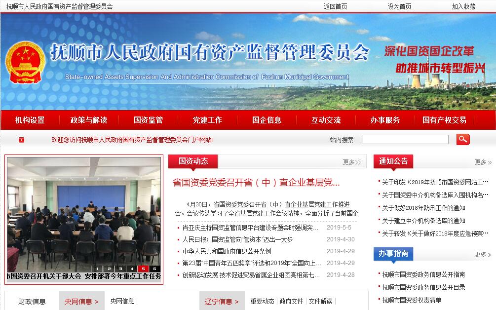 根据《中共辽宁省委办公厅 辽宁省人民政府办公厅关于印发〈抚顺市人民政府职能转变和机构改革方案〉的通知》(厅秘发﹝2014﹞18号),设立抚顺市人民政府国有资产监督管理委员会(简称市国资委),局级,为市政府工作部门。其主要职责是:一、根据市政府授权,依照《中华人民共和国企业国有资产法》、《中华人民共和国公司法》等法律、法规和规章履行出资人职责,监管市属企业国有资产,加强国有资产管理工作。二、拟订国有资产监督管理的地方性法规和市政府规章草案,制定国有资产监督管理的有关政策和规章制度并监督执行,依法对县、区国有资产管理工作进行指导和监督。三、负责指导推进全市国有企业改革,推进国有企业现代企业制度建设,完善公司法人治理结构,推动国有资本和国有经济布局结构优化和战略性调整。四、承担监督所监管企业国有资产保值增值的责任,指导和监督所监管企业资本运营,建立和完善国有资产保值增值指标体系,拟订考核标准,对所监管企业国有资产的保值增值情况进行监督,负责所监管企业工资分配管理,参与制定所监管企业负责人收入分配政策并组织实施。五、负责所监管企业领导班子建设,通过法定程序对所监管企业负责人进行任免、考核并根据其经营业绩进行奖惩,建立符合社会主义市场经济体制和现代企业制度要求的选人、用人机制,完善经营者激励和约束制度。六、按规定代表市政府向所监管企业派出监事会,审核监事会向市政府提交的监督检查报告,负责监事会的日常管理工作。七、负责组织所监管企业上交国有资本收益,按规定参与制定市国有资本经营预算有关管理制度,负责编制市本级国有资本经营预算建议草案。八、负责监督国有资产监管制度落实情况,完善出资人监督体系,加强监督协同,健全并执行国有资产损失责任追究制度和问责机制。九、按照出资人职责,督促检查所监管企业贯彻落实国家、省和市安全生产方针政策及有关法律、法规、规章及标准等工作。十、负责所监管企业党的组织建设、队伍建设等工作,强化所监管企业思想政治教育和理论学习工作,指导企业精神文化建设。十一、承办市政府交办的其他事项。