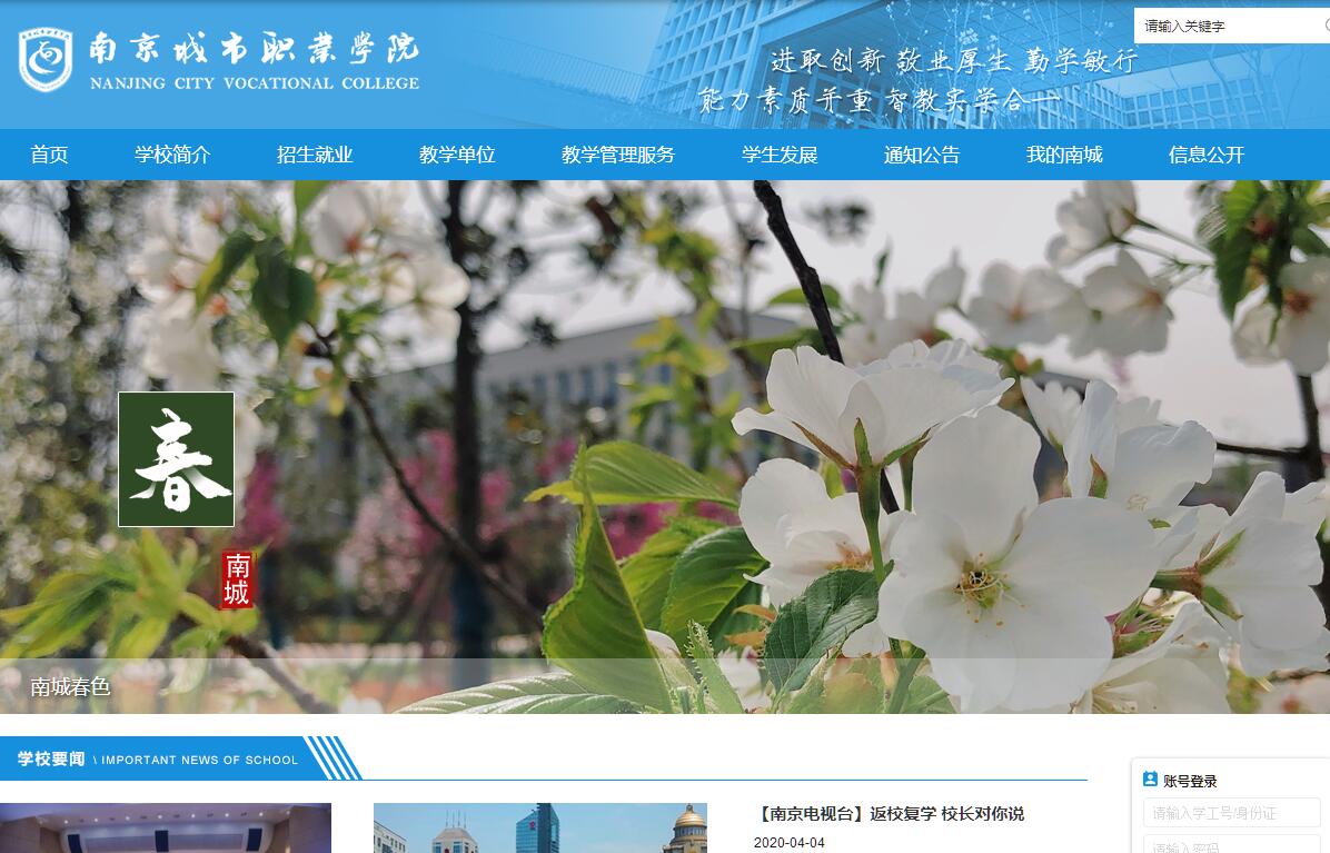 南京城市职业学院坐落在钟灵毓秀、人文荟萃的古都南京,是经江苏省人民政府批准,国家教育部备案,独立建制的普通高等职业院校。学院始终坚持“立足地方、服务社会、育人为本、彰显特色”的办学理念,以现代服务业为主,培养应用型技术技能型人才为主要任务,认真践行“厚德砺能”的校训精神,大力倡导“进取创新”的校风,“敬业厚生”的教风和“勤学敏行”的学风,积极探索高等职业教育的办学模式和人才培养模式,不断深化教育教学改革,全面推进综合素质教育,以教学质量求生存,以专业特色求发展,加速争创一流高等职业院校。学院教职员工340人,在校生约4500人,设有财金与商贸学院、工程与信息学院、社会管理学院、文创艺术学院、旅游管理学院等5个二级学院及公共教学部,开设国际经济与贸易、物流管理、跨境电商、计算机应用技术、智能控制技术、电子信息工程技术、老年服务与管理、社区管理与服务、幼儿发展与健康管理、视觉传达艺术、产品造型设计、旅游管理、空乘服务等30个专业。学院教学设备先进,校园环境优美、生活设施齐全,拥有田径场、足球场、多功能厅在内的活动设施以及与校园配套的学生公寓,为学生提供了良好的学习与生活平台。学院建有江苏省教育厅项目支持的高职人才实训基地,先后与二百余家企事业单位建立了稳固的实训实习关系。学院在教育主管部门的指导下,成立了“南京市健康产业职教集团”,打造具有全生命健康周期照顾特色的智能信息化、国际化产教融合平台。学院以服务为宗旨,以就业为导向,以能力为本位,突出人才培养的职业化方向,全面实行“毕业证书、职业技能证书”双证制度,从而增强学生的就业竞争能力和职业岗位适应能力。学生就业率近年来保持在98%以上。学院以服务社会为己任,以教书育人、传播文明为天职,引导学生成人成才,不断向社会输送高质量的职业技术人才。学院始终坚持以教学为中心,严谨治学,从严治教,构建了教书育人、服务育人、管理育人、环境育人的育人机制。学院教师队伍实力雄厚,教学经验丰富,科研能力强。学院采取对外引进和在职培养结合的方针,在不断引进高层次人才的同时大力培养优秀中青年骨干教师,已形成了一支学历层次较高、专业结构较为合理、年龄呈梯次分布、有较强学术研究和教学能力、双师型教师占一定比重、适应产学研一体化高职教育需要的专职教师队伍。面向未来,南京城市职业学院面临着新的发展机遇,学院将继续深化改革,开拓创新,不断探索富有高等职业教育特色的办学模式,以开放的姿态迎接新的挑战,为把学院加快建成国内一流的职业学院而继续奋斗。