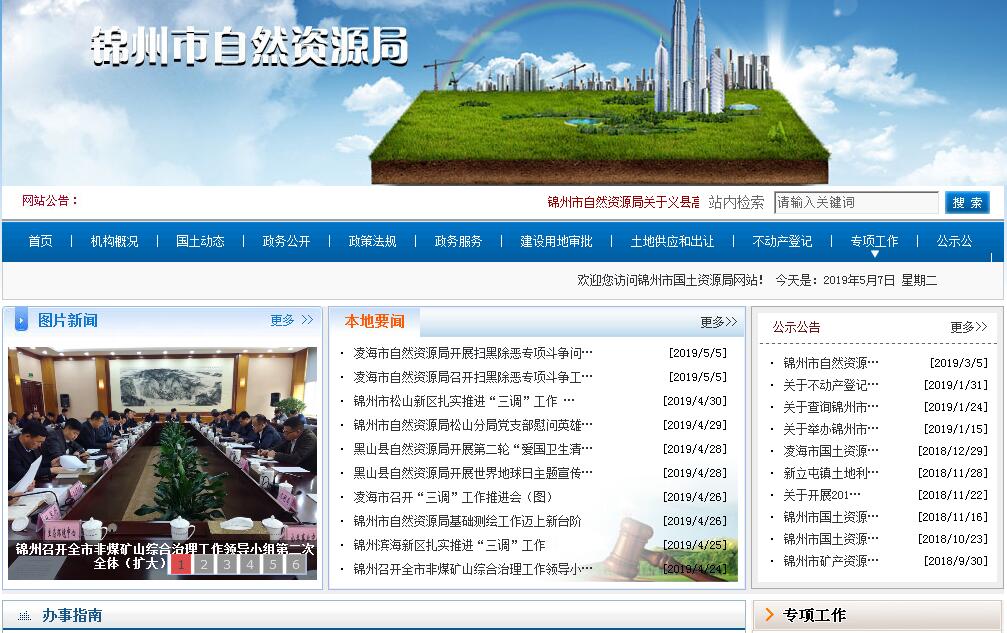 锦州市自然资源局,根据《中共辽宁省委办公厅、辽宁省人民政府办公厅关于印发〈锦州市机构改革方案〉的通知》(厅秘发〔2018〕220号),锦州市自然资源局是市政府工作部门,为正处级。加挂锦州市海洋局、锦州市规划委员会办公室牌子,统一领导和管理锦州市林业和草原局。2019年1月7日,锦州市自然资源局举行挂牌仪式。锦州市自然资源局贯彻落实党中央关于自然资源工作的方针政策和决策部署,在履行职责过程中坚持和加强党对自然资源工作的集中统一领导。其主要职责是:(一)履行全民所有土地、矿产、森林、草原、湿地、水、海洋等自然资源资产所有者职责和所有国土空间用途管制职责。组织实施国家自然资源和国土空间规划及测绘等法律、法规,拟订相关管理办法并贯彻实施。(二)负责自然资源调查监测评价。贯彻执行自然资源调查监测评价的指标体系和统计标准,建立统一规范的自然资源调查监测评价制度。实施自然资源基础调查、专项调查和监测。负责自然资源调查监测评价成果的监督管理和信息发布。指导各县(市)自然资源调查监测评价工作。(三)负责自然资源统一确权登记工作。制定各类自然资源和不动产统一确权登记、权籍调查、不动产测绘、争议调处、成果应用的制度、标准、规范。推进自然资源和不动产登记信息管理基础平台建设。负责自然资源和不动产登记资料收集、整理、共享、汇交管理等。指导监督各县(市)自然资源和不动产确权登记工作。(四)负责自然资源资产有偿使用工作。贯彻执行国家全民所有自然资源资产统计制度,负责全市全民所有自然资源资产核算。编制全民所有自然资源资产负债表,拟订考核标准。执行全民所有自然资源资产划拨、出让、租赁、作价出资和土地储备政策,合理配置全民所有自然资源资产。负责自然资源资产价值评估管理,依法收缴相关资产收益。(五)负责自然资源的合理开发利用。贯彻执行自然资源发展规划和战略,制定自然资源开发利用标准并组织实施,建立政府公示自然资源价格体系,组织开展自然资源分等定级价格评估,开展自然资源利用评价考核,指导节约集约利用。负责自然资源市场监管。组织研究自然资源管理涉及宏观调控、区域协调和城乡统筹的政策措施。(六)负责建立空间规划体系并监督实施。推进落实主体功能区战略,组织编制并监督实施国土空间规划和相关专项规划,城乡控制性详细规划、分区规划,统筹衔接其他种类专项规划。开展国土空间开发适宜性评价,建立国土空间规划实施监测、评估和预警体系。组织划定生态保护红线、永久基本农田、城镇开发边界等控制线,构建节约资源和保护环境的生产、生活、生态空间布局。贯彻落实国土空间用途管制制度,研究拟订城乡规划政策并监督实施。组织拟订并实施土地、海洋等自然资源年度利用计划。承担需报国务院和省政府、市政府批准的土地转用、征收征用的相关工作。(七)负责统筹国土空间生态修复。牵头组织编制国土空间生态修复规划并实施有关生态修复重大工程。负责国土空间综合整治、土地整理复垦、矿山地质环境恢复治理、海洋生态、海域海岸线和海岛修复等工作。牵头实施生态保护补偿制度,制定合理利用社会资金进行生态修复的政策措施,提出重大备选项目。(八)负责组织实施最严格的耕地保护制度。贯彻执行耕地保护政策,负责耕地数量、质量、生态保护。组织实施耕地保护责任目标考核和永久基本农田特殊保护。落实耕地占补平衡制度,监督占用耕地补偿制度执行情况。(九)负责管理地质勘查相关工作。组织实施全市地质调查和矿产资源勘查,管理市级地质勘查项目,负责地质灾害预防和治理,监督管理地下水过量开采及引发的地面沉降等地质问题。负责古生物化石的监督管理。(十)负责落实综合防灾减灾规划相关要求,组织编制地质灾害防治规划和防护标准并指导实施。组织指导协调和监督地质灾害调查评价及隐患的普查、详查、排查。指导开展群测群防、专业监测和预报预警等工作,指导开展地质灾害工程治理工作。承担地质灾害应急救援的技术支撑工作。(十一)负责矿产资源管理工作。负责矿产地储备、压覆矿产资源管理。负责矿业权管理。会同有关部门承担保护性开采的特定矿种、优势矿产的调控及相关管理工作。监督指导矿产资源合理利用和保护。(十二)负责组织实施海洋战略规划和指导海洋经济发展。贯彻执行海洋发展等战略。会同有关部门编制海洋发展战略、海洋经济发展等规划和政策并组织监督实施。负责组织全市海洋经济运行综合监测、统计核算、评估及信息发布。(十三)负责编制并实施全市海洋功能区划、海域海岛保护利用等规划。负责海洋开发利用和保护的监督管理工作。负责海域使用和海岛保护利用管理。负责无居民海岛、海域、海底地形地名管理工作。负责海洋观测预报、预警监测和减灾工作,参与重大海洋灾害应急处置。(十四)负责测绘地理信息管理工作。负责基础测绘和测绘行业管理。负责测绘资质资格与信用管理,监督管理地理信息安全和市场秩序。负责地理信息公共服务和地图管理。组织实施地方测量标志的设立和保护。(十五)推动自然资源领域科技发展。制定并实施自然资源领域科技创新发展和人才培养规划和