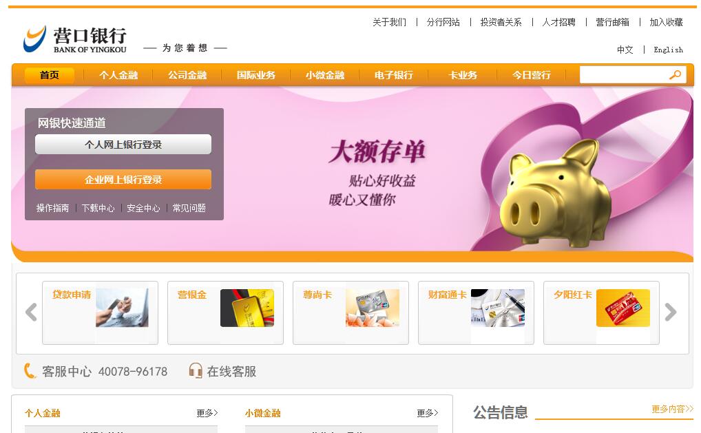 营口银行,一家充满生机、富于特色和创新力的现代商业银行。营口银行成立于1997年4月,总部设于辽宁营口,服务网络覆盖至沈阳、大连、哈尔滨、葫芦岛、鞍山、丹东、盘锦、本溪、辽阳、阜新、锦州、营口等12个东北地区主要城市,分行数量13家,各级机构总数近120家,员工总数近3000人。2018年末,全行资产规模突破1600亿元。20余年来,营口银行积极顺应中国经济发展的时代洪流,以最矫健的姿态融入其中,全力支持实体经济发展,深入践行企业社会责任,实现了企业价值与社会价值的同步提升,已发展成为中国一家公司治理完善、经营特色鲜明、经营效益良好、资产质量上乘、综合实力位列全国城商行优秀行列的区域性股份制商业银行。秉承“致广大,尽精微”的核心价值观和“谦恭、诚信、创新、进取”的企业精神,营口银行始终坚持“服务中小微、服务市民、服务地方”的市场定位,走差异化、特色化、精细化道路,追求质量、效益、规模、结构协调发展,走出了一条低风险、稳增长、后劲足的健康发展之路。营口银行始终保持稳健协调的发展步伐,形成了公司业务、零售业务、国际业务等多项业务板块和功能多元、内容丰富、特色鲜明的产品体系,逐步构建了“传统+新兴”“线上+线下”的业务发展新格局,金融服务水平持续跃升。营口银行视经营品质如企业生命。近年来,营口银行拨备覆盖率、拨贷比率、流动性比率等各项主要监管指标表现良好,持续保持较强的风险抵御能力,在实现企业经营稳健增长的同时始终保持良好的发展质量。依托各项业务的健康发展和经营品质的不断提升,营口银行得到了来自社会各界的广泛认同。先后被中国金融专家年会评选为“中国最具成长力金融机构”“中国最具成长力中小银行”“中国最具特色中小银行”“中国城市金口碑服务银行”;被中国中小银行发展高峰论坛授予“最佳中小企业服务奖”“最具市场竞争力奖”“金口碑特色银行奖”“最具品牌知名度银行”奖项;入选“2017中国银行业100强”“2018中国银行业100强”“中国银行机构公众品牌认知度100强”“中国金融机构公众品牌认知度100强”。助力小企业,贷就大梦想。自成立以来,营口银行专注主业,深入市场,贴近客户,着力创造,在与众多中小微企业的业务往来中,掌握了中小企业金融服务的核心技术专长,形成了独特的竞争优势,塑造了鲜明的“中小企业的伙伴银行”特色品牌。立行以来,营口银行累计投放超过5500亿元信贷资源支持中小企业发展,中小企业贷款量占营口银行全部贷款90%以上,小微贷款余额占全行公司类贷款余额比重为85.68%,民营企业贷款余额占全行公司类贷款余额比重为91.15%,为促进中小微企业与民营企业发展做出了持续的努力和卓越的贡献。近年来,经济金融改革深入推进,面临新的市场环境,营口银行始终坚持做中小微企业的可靠伙伴,大力促进服务模式创新、业务产品创新、流程机制创新,在保证银行风控要求的基础上,充分发挥“灵活高效”的一贯优势,全力推动中小微企业及战略新兴产业的良好发展。创新推出“融货通”“订单贷”“商标权质押贷款”“应收账款质押贷款”等更为适合小微企业和民营企业经营特点的融资产品,打造“全生命周期”服务将金融服务融入企业成长全过程,建立一套独具特色的综合化服务方案,推动企业金融服务质效持续提升。20余年深耕“中小微”,赢得广泛赞誉。营口银行先后被监管机构授予“全国银行业金融机构小企业贷款工作先进单位”“全国银行业金融机构小微企业金融服务先进单位”“辽宁省小企业信贷服务先进单位”“营口银行业小微企业金融服务先进单位”;被中国印刷及设备器材工业协会授予“中国中小印刷企业最佳服务银行”;被第八届中国金融(专家)年会授予“品牌竞争力小企业服务银行”;被辽宁省银行业授予小微企业金融服务“优秀金融机构”。立行以来,营口银行始终秉承着“为您着想”的服务理念,结合当地市民金融生活需求,丰富产品、创新服务、拓宽渠道、加强合作,着力打造“市民生活的管家银行”。当前,营口银行百余家机构网点因地制宜,以专业见长、以贴心著称、产品全面丰富、服务方便快捷,已经在个人金融服务领域打造出了具有鲜明特色的服务品牌。