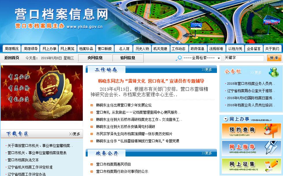 营口市档案局(馆)为市委、市政府直属局,履行依法行政、监督指导、档案保管和利用等职能。内设10个科室,即机关党总支、办公室、法规教育科、监督指导一科、监督指导二科、管理科、编研科、信息科、征集科、技术保护科。全局(馆)编制34人。局(馆)址位于营口市站前区公园路10号。1959年3月,成立营口市档案管理处,1960年1月,成立营口市档案馆,市档案馆与市档案管理处合署办公。1980年1月,恢复营口市档案管理处,与市档案馆合署办公。1986年1月,营口市档案管理处改为营口市档案局,与市档案馆仍合署办公。1995年机构改革为局馆合一体制。营口市档案局(馆)现馆房建筑面积11000平方米,分为档案库房、业务技术用房和办公辅助用房三个区。截至2015年底,馆藏档案21万卷(册)。档案起止年代为1870年(同治九年)至2015年。馆藏资料10类7500余册。营口市档案馆不仅是全市保管和利用档案的中心,也是全市已公开政府信息查阅场所。近年来,市档案局(馆)坚持“建设大档案,服务大营口”的理念,解放思想,与时俱进,大胆创新。2010年筹建“营口文化名人馆”,2011年迁移到营口西部老街。该馆共收集营口古、现、当代文学艺术、科技、教育、卫生、体育、新闻、宗教、理论界等文化名人290余位,作品1000余件。已成为营口西大街的一处亮点和营口“文化强市”的对外窗口,常年对外开放。2007年营口市档案局(馆)荣获全国档案系统先进集体;2008年营口市档案馆在东北、西北中小城市中首家晋升为国家一级档案馆;2011年,营口文化名人馆被评为市直机关第一批优秀工作成果;2014年营口市档案馆顺利通过国家一级综合档案馆复查验收;2015年营口市档案局(馆)荣获辽宁省档案系统先进集体。期间,局(馆)先后被省档案局评为目标管理先进单位,荣获改革创新奖,市直机关目标管理先进单位、市级文明单位、法制建设先进单位和市“三八”红旗先进集体等。