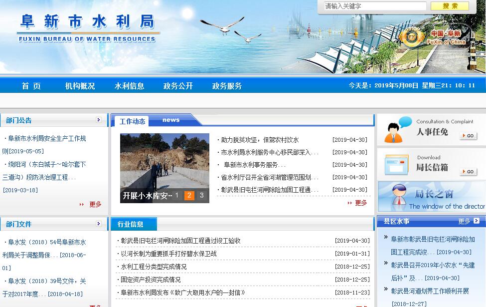 根据《中共辽宁省委办公厅、辽宁省人民政府办公厅关于印发<阜新市人民政府机构改革方案>的通知》(辽委办发〔2009〕51号)和《中共阜新市委办公室、阜新市人民政府办公室关于实施市政府机构改革方案有关问题的通知》(阜委办发〔2010〕31号),设立阜新市水利局,正县级建制,为市政府工作部门。其主要职责是:(一)贯彻执行国家和省各项水管理、水产管理法律、法规及有关方针政策;拟订全市水利、水产规章和政策并监督实施。(二)组织拟订全市水利工作、水产工作的中长期规划和年度计划;组织编制全市主要河流的流域综合规划和有关专业规划并监督实施。(三)负责生活、生产和生态环境用水的科学配置和保障,实施水资源的统一监督管理;拟订全市水资源中长期供求规划、水量分配方案并监督实施;组织开展水资源调查评价工作,负责区域内水资源调度;组织实施取水许可制度,实施水资源有偿使用制度及水资源论证、防洪评价制度;发布水资源信息、全市水资源公报;监测地表水和地下水量、水质。(四)拟订全市计划用水、节约用水政策,编制节约用水规划,制定行业用水定额,组织指导和监督节约用水工作;指导和推动节水型社会建设工作。(五)组织编制水资源保护规划;核定水域纳污能力,提出限制排污总量意见;组织实施饮用水水源保护工作,指导地下水开发利用和城市规划区地下水资源管理保护工作。(六)组织、指导全市水政、渔政监察和水行政、水产行政执法;协调并仲裁部门间和市辖县区间的水事和水产纠纷。(七)承担水利、水产资金和水利、水产国有资产的监督管理工作;提出有关水利、水产价格和收费的建议;负责提出水利固定资产投资规模、方向和财政性资金安排意见并组织实施。(八)组织编制、审查全市水利基建项目前期工作技术文件(项目建议书、可研报告、初步设计及施工设计),监督国家、省和市有关水利行业技术标准和水利工程规程、规范的实施。(九)组织、指导全市水利设施、水域及其岸线的管理保护;组织指导本市境内河流的治理和开发,办理市际河流的有关事务;组织建设和管理具有控制性或跨地区、流域的重要水利工程。(十)负责水利行业安全生产工作,组织、指导全市水库、大坝的安全监管。(十一)组织指导全市农村水利、饮水安全及村镇供排水工作;组织指导全市农田水利基本建设工作;指导全市农村水利社会化服务体系建设。(十二)组织全市水土保持工作;研究制定水土保持规划,组织水土流失监测和综合防治。(十三)组织、协调、监督、指导全市防洪和抗旱工作,对重要河流、水利工程实施防汛抗旱调度;编制防汛抗旱应急预案并组织实施。(十四)负责全市性的水利、水产科技、教育及对外经济技术合作与交流;指导全市水利、水产队伍建设。(十五)负责大中型移民后期扶持规划(600元以内)项目审批。(十六)承办市政府交办的其他事项。