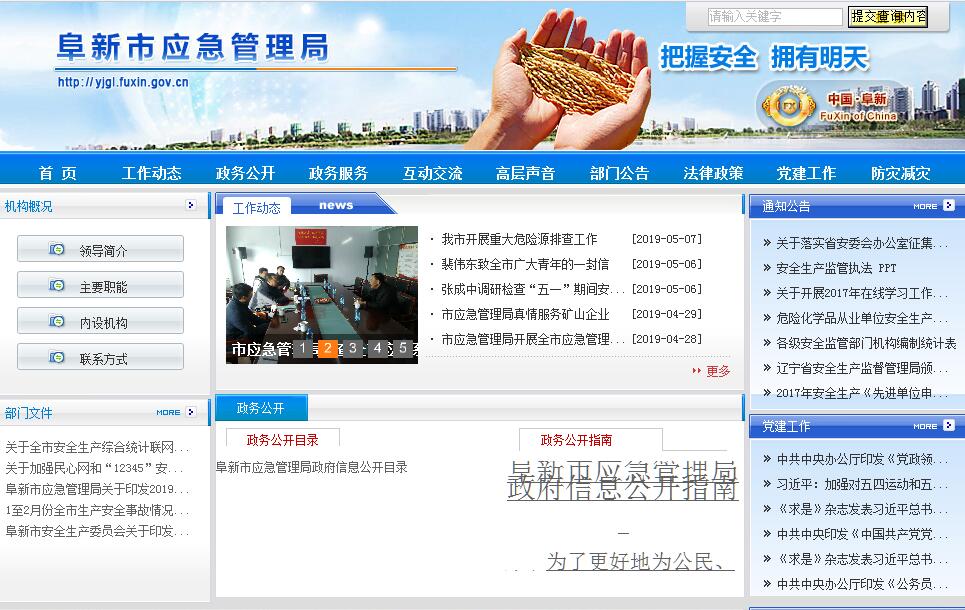 阜新市应急管理局主要职责:(一)负责应急管理工作,指导各地区各部门应对安全生产类、自然灾害类等突发事件和综合防灾减灾救灾工作。负责安全生产综合监督管理和工矿商贸行业(煤矿除外,下同)安全生产监督管理工作。(二)拟订应急管理、安全生产等方针政策,组织编制全市应急体系建设、安全生产和综合防灾减灾规划,起草相关市政府规章草案,组织制定地方规程、标准并监督实施。(三)指导应急预案体系建设,建立完善事故灾难和自然灾害分级应对制度,组织编制全市总体应急预案和安全生产类、自然灾害类专项预案,综合协调应急预案衔接工作,组织开展预案演练,推动应急避难设施建设。(四)牵头建立统一的应急管理信息系统,负责信息传输渠道的规划和布局,履行应急值守,综合协调,信息汇总职能。建立监测预警和灾情报告制度,健全自然灾害信息资源获取和共享机制,依法统一发布灾情。(五)组织指导协调安全生产类、自然灾害类等突发事件应急救授,综合研判突发事件发展态势并提出应对建议,协助市委、市政府指定的负责同志组织相关灾害应急处置工作。(六)统一协调指挥各类应急专业队伍,建立应急协调联动机制,推进指挥平合对接,衔接解放军和武警部队参与应急救援工作。(七)统筹应急救援力量建设,负责消防、森林和草原火灾扑救、抗洪抢险、地震和地质灾害救援、生产安全事故救援等专业应急救援力量建设,指导各县、区及社会应急救援力量建设。(八)负责消防工作,指导县、区消防监督、火灾预防、火灾扑救等工作。(九)指导协调森林和草原火灾、水旱灾害、地震和地质灾害等防治工作,负责自然灾害综合监测预警工作,指导开展自然灾害综合风险评估工作。(十)组织协调灾害救助工作,组织指导灾情核查、损失评估、救灾捐赠工作,管理、分配下拨救灾款物并监督使用。(十一)负责地震管理工作,按照《中华人民共和国防震减灾法》要求,负责全市防震减灾工作,贯彻落实国家防震减灾工作方针,依照防震减灾法律、法规开展各项工作。(十二)依法行使安全生产综合监督管理职权,指导协调、监督检查市政府和中省直有关部门和各县、区政府安全生产工作,组织开展安全生产巡查、考核工作。(十三)按照分级、属地原则,依法监督检查工矿商贸生产经营单位贯彻执行安全生产法律法规情况及其安全生产条件和有关设备(特种设备除外)、材料、劳动防护用品的安全生产管理工作。按分工负责监督管理工矿商贸企业的安全生产工作。依法组织并指导监督实施安全生产准入制度。负责危险化学品安全监督管理综合工作和烟花爆竹安全生产监督管理工作。(十四)依法组织指导有关生产安全事故调查处理,监督事故查处和责任追究落实情况。组织开展自然灾害类突发事件的调查评估工作。(十五)制定应急物资储备和应急救援装备规划并组织实施,会同市粮食和物资储备局建立健全应急物资信息平台和调拨制度,在救灾时统一调度。(十六)负责应急管理、安全生产宣传教育和培训工作,组织指导应急管理、安全生产的科学技术研究、推广应用和信息化建设工作。(十七)承担全市铁路无人看守道口(铁路专用线、专用铁路、地方铁路的无人看守道口除外)的安全监督管理工作。(十八)完成市委、市政府交办的其他任务。