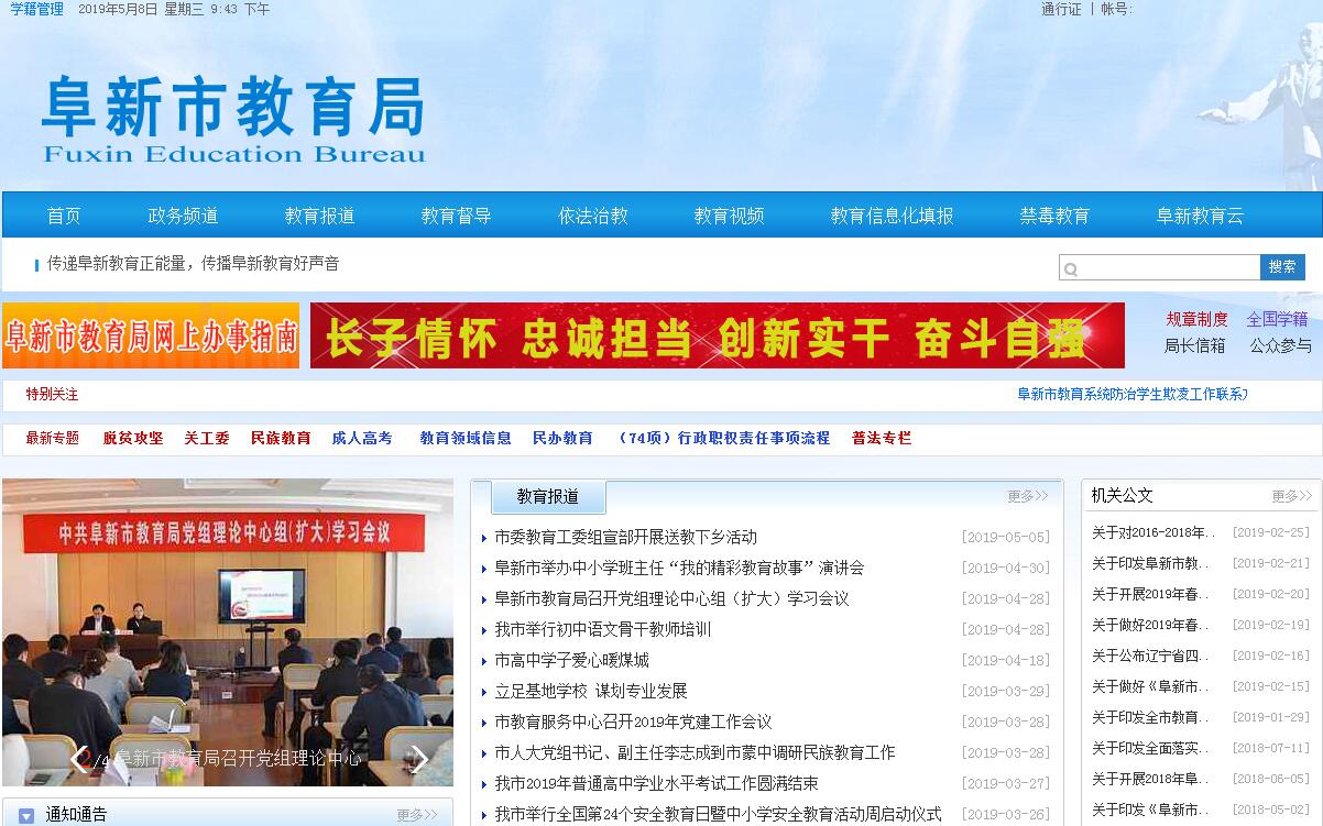 阜新市教育局,是阜新市主管教育的政府部门。机关设有:办公室(计财科)、教育工委组宣部(市委教育工作领导小组秘书组秘书科、机关党委办公室)、基础教育科(民族教育科)、行政审批科(人事科)、高等教育和职业教育科、安全与体卫艺科、学前教育科。其主要职责是:(一)贯彻执行党和国家的教育方针、政策和法律法规以及上级各项决定,负责监督检查和指导各级、各类学校的工作,按上级要求制定行政措施和补充规定等。(二)负责提出全市教育事业发展规划;拟订教育教学改革政策,指导并协调实施工作。(三)管理全市学前教育、初等教育、中等教育、高等教育工作;依据国家有关教育法律、法规和规章,对所属单位、下级教育行政部门及各类教育工作进行教育评价和教育督导。(四)负责全市各级各类学校思想政治教育、品德教育工作;负责全市中小学体育、卫生、艺术教育及安全教育、国防教育等工作。(五)管理和指导全市少数民族教育工作和民族团结教育工作。(六)负责民办高中阶段教育机构的审批和管理;指导和监管全市民办教育工作。(七)负责语言文字有关管理工作。(八)管理局直属单位教育经费,参与拟订筹措教育经费、教育拨款、教育基本建设投资的政策;监测全市教育经费的筹措和使用情况;制定全市校舍维修计划,并分级组织实施。(九)主管全市教师工作;参与全市中小学校人员编制的审定工作;组织实施职业学校及中小学教师资格认定工作和专业技术职务评审工作;统筹规划和实施教师、校干培训工作;负责全市教师调配、公开招聘教师和师范院校毕业生就业指导工作。(十)负责管理高、中等学历教育的招生考试工作;与有关部门共同编制和实施市属专科和普通中专、成人中专、中等职业学校招生计划;负责市属普通中专、成人中专、中等职业学校(职业高中)专业设置审批和职业高中(中专)学籍管理;负责对各中等专业学校评估及学历证书的认定、验印等工作。(十一)负责各级各类贫困学生的资助工作。(十二)指导全市教育系统勤工俭学、生产劳动教育工作的开展,负责校办企业的认证、管理,直属单位集体工人管理,组织与管理全市中小学开展综合实践教育活动。(十三)按照干部管理权限,负责机关及所属单位人员选拔、任用、培训、考核、奖惩及管理工作;负责机关及直属单位党建工作。(十四)承办市政府交办的其他事项。