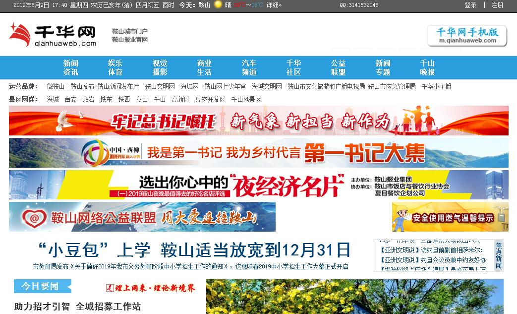 | 网站简介: 千华网成立于2002年,由鞍山报业集团(鞍山日报社)主办,历经数次改版,自2009年起,成为报纸、电台、电视台三种传统媒体之外的"鞍山第四媒体"、"鞍山门户网站"和"鞍山人自己的门户网"。目前,千华网是鞍山以新闻信息服务为主的权威综合性门户网站,日均访问量15万,是80%以上鞍山网民的首选门户网站。千华网依托鞍山报业集团强大专业的采编力量,通过热点新闻、新闻专题、在线访谈、图片新闻、论坛等形式,第一时间向网友发布权威、翔实的信息,其中包括《鞍山日报》、《千山晚报》数字报,全球的鞍山籍乡友每天都可以通过千华网了解家乡的发展情况,是网上认识鞍山、宣传鞍山的首选,在我市网络文化建设中占有举足轻重的地位。秉承鞍山报业集团的坚实足迹,本着"权威性、多样性、本地化"的原则,千华网全体成员将继续努力,力争将千华网打造成立足鞍山、服务大众、面向世界、影响深远的一流新闻网站。 |