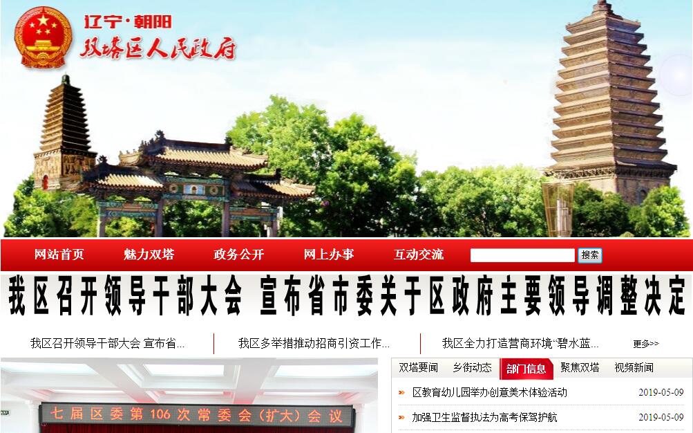 双塔区于1984年建区,是朝阳市政治、经济、文化中心,位于辽宁西部朝阳市境内,坐落在努鲁儿虎山脉东侧、松岭山脉西麓,是大凌河河谷中的长形盘地。因城内筑有保存完好的北魏时期的北塔和辽代南塔而得其名;地理坐标为东经120°23′15″-120°31′56″,北纬41°31′22″-41°36′57″;辖区总面积500平方公里,下辖4个乡(镇)、11个街道办事处、49个行政村、58个社区,总人口42万人;辖区内居住着蒙古族、满族、回族、朝鲜族、壮族等23个少数民族。双塔区东联辽宁中部城市群和辽东半岛,西接京津冀都市圈,南临渤海,北靠内蒙古腹地,地理位置优越,是连接关内外的重要节点城区。境内四条高速公路、十条国省干道、六条铁路纵横交错;距锦州港90公里;京沈高速铁路开通后,到沈阳仅40分钟,到北京只需90分钟,与辽宁沿海经济带周边大中城市基本属于“1小时经济圈”;机场航班直飞北京、大连、上海;是本世纪国家发展战略——辽宁沿海经济带的重要组成部分,是连接关内、东北、内蒙古的交通要冲和枢纽。双塔区自古以来为塞外战略要地,历史底蕴深厚,自西汉以来历代均在此设置郡县,前燕、后燕、北燕三个王朝曾在此建都百年之久,素有“三燕古都”之称。2005年,“三燕古都”遗址被列入全国十大考古新发现之一。双塔区是东北佛教文化的“祖庭”,有北魏北塔、辽代南塔、金代三学寺碑等古迹,尤其北塔是全国唯一的“五世同堂”宝塔,塔内奉存的佛祖释迦牟尼佛真身舍利堪称佛教文化瑰宝;辖区内国家级森林公园和AAAA级风景名胜区凤凰山处于古代东北亚丝绸之路的交通枢纽之上,有记载的佛教历史长达1670年,是东北亚地区佛教文化传播中心,被誉为“佛教圣地”;优美宜人的大凌河沿河风景区融自然风光和人文景观于一体,两岸长堤浩荡,密林风草,曲径通幽,塔影岚光,鸥鸟翔集,让人留恋往返。