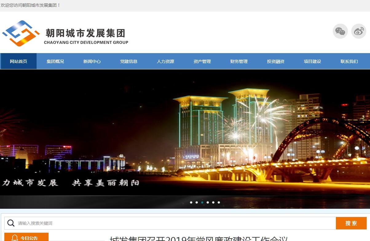 朝阳城市发展集团有限公司由朝阳市人民政府国有资产监督管理委员会投资成立,于2016年12月28日完成注册。城发集团主要经营范围:城市基础设施、公共事业项目建设的投资、融资、建设、运营;市政府授权的国有资产经营管理和资本运作;土地整理及综合开发;房地产开发、标准化厂房、保障性住房等项目的投资、建设、运营;建筑材料经营;利用自有资产对外进行各项投资。集团公司对组织架构与部门职能进行了科学设置。公司内设机构7个部室,具体有:人力资源部(含党群工作部)、审计监察室、综合管理部、财务部、项目管理部、投融资部、资产管理部。6个子公司具体有城发建筑工程有限公司、城发劳务有限公司、城发贸易有限公司、城发置业有限公司、城发汽车租赁有限公司、城发新能源有限公司。城发集团未来发展紧紧围绕朝阳市委、市政府工作重点和产业发展思路,以推进供给侧结构性改革为主线,以习总书记深化国企改革系列指导意见为依托,以新常态下朝阳新型城镇化建设为机遇,服务“五个一工程建设”,顺势而为构建城发集团未来转型发展之路。城发集团以“专注城市建设,服务朝阳发展”为使命;以打造“朝阳城市建设服务商和投资运营商”为愿景;坚持政策性投资与市场化发展的双轮驱动,形成“分业经营、分类管理”的管理格局。城发集团的总体定位就是:朝阳城市可持续发展的主力军。发展方向以“资本运作”为中心,实现产业布局合理化;集团公司是 “战略决策”者,实现集团发展协同化;采取“运营监控”方式管理各子公司,实现集团管理规化。