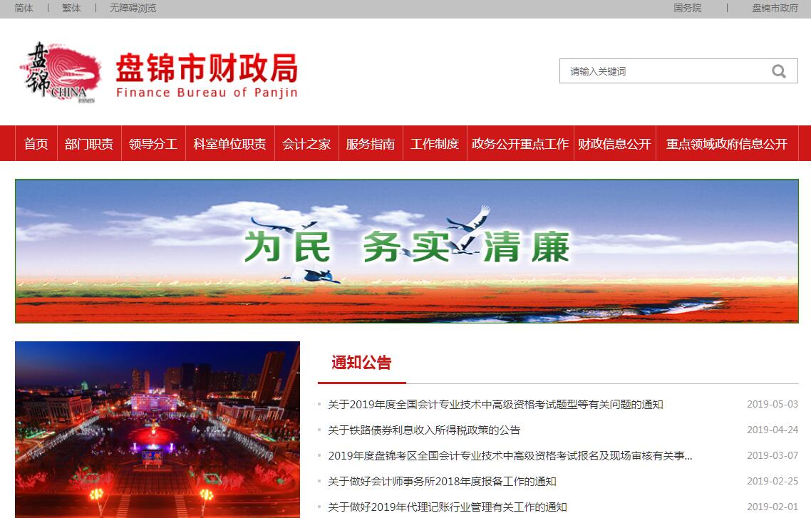 盘锦市财政局主要职责:(一)贯彻执行国家和省财税方针、政策;拟订和执行市财税政策、改革方案及其他有关政策;参与制定各项宏观经济政策;提出运用财税政策实施宏观调节和综合平衡社会财力的建议;拟订和执行市与县区的分配政策;完善鼓励公益事业发展的财税政策。(二)承担市本级各项财政收支管理的责任;负责编制年度市本级预算草案并组织执行;受市政府委托,向市人民代表大会报告市本级和全市年度财政预算及其执行情况,向市人大常委会报告财政决算;组织制定经费开支标准、定额,负责审核批复部门(单位)的年度预决算;完善转移支付制度;指导县、乡财政管理工作。(三)负责政府非税收入管理,按规定管理行政事业性收费、政府性基金及其他非税收入;管理财政票据。(四)严格执行国库集中收付制度,指导和监督全市财政国库业务,按规定管理国库现金。(五)根据政府采购制度,监督管理采购活动。(六)负责市本级财政预算内行政机构、事业单位和社会团体的非贸易性购汇人民币限额预算管理。(七)负责审核和汇总编制全市国有资本经营预决算草案,制定国有资本经营的预算制度和办法,收取市本级企业国有资本收益,贯彻国家企业财务制度,拟订并组织执行全市企业财务管理制度。(八)负责办理和监督市本级财政的经济发展支出、市投资项目的财政拨款,参与拟订市建设投资的有关政策;负责有关政策性补贴和专项储备资金财政管理工作;组织审查财政性投资工程预(结)算、竣工决算;承担国家赔偿费用管理工作;负责农业综合开发管理工作。(九)编制市本级社会保障预决算草案,会同有关部门管理市财政社会保障和就业及医疗卫生支出。(十)贯彻执行国家和省关于政府债务管理制度和政策,拟订全市政府性债务管理制度和办法;负责地方金融机构财务管理与监督;负责城市商业银行和农村合作金融机构财务管理;防范财政风险;管理政府内外债;按规定管理外国政府和国际金融组织贷(赠)款。(十一)监督和规范会计行为;制订全市会计管理制度并组织实施,按规定管理会计师事务所;指导和管理社会审计。(十二)监督检查财税法规、政策的执行情况和财政资金使用管理情况,反映财政收支管理中的重大问题,提出加强财政管理的政策建议。(十三)承办市政府交办的其他事项。
