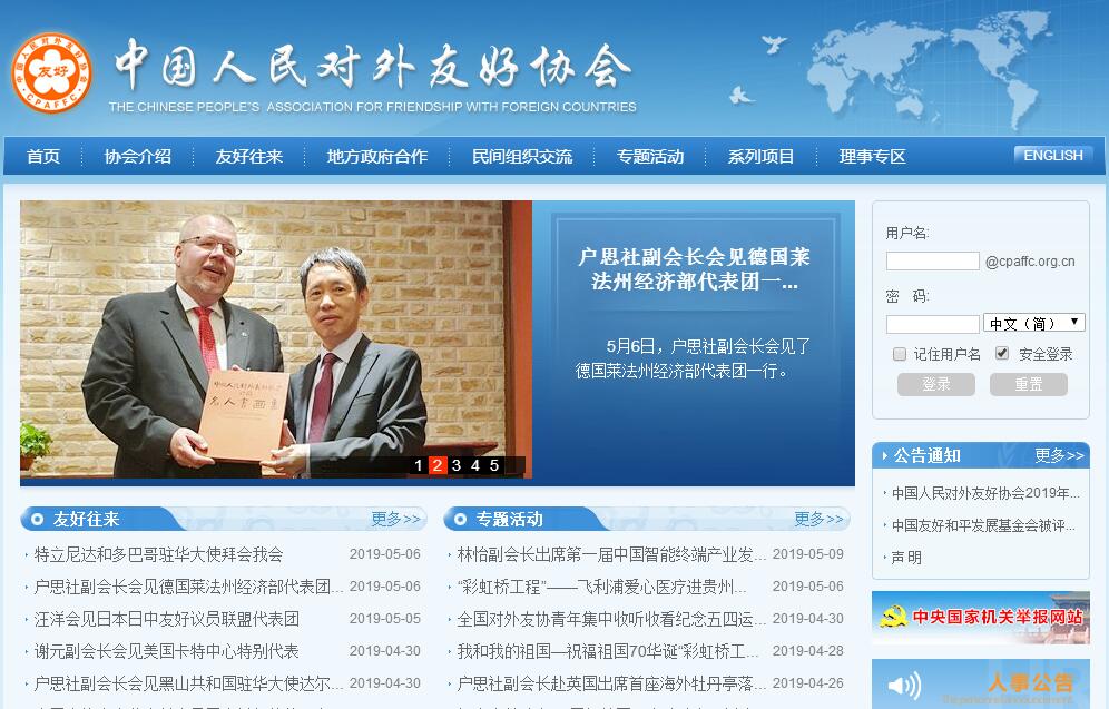 中国人民对外友好协会(简称“全国对外友协”)是中华人民共和国从事民间外交事业的全国性人民团体,以增进人民友谊、推动国际合作、维护世界和平、促进共同发展为工作宗旨,代表中国人民在国际社会和世界各国广交深交朋友,奠定和扩大中国与世界各国友好关系的社会基础,致力于全人类团结进步的事业。全国对外友协贯彻执行中国独立自主的和平外交政策,遵循和平共处五项原则,开展全方位、多层次、宽领域的民间友好工作,为实现中国的和平发展与和平统一大业服务,为建设持久和平、共同繁荣的和谐世界而努力奋斗。全国对外友协的各项活动得到中国政府的支持和社会各界的赞助,已设立46个中外地区、国别友好协会,与世界上157个国家的近500个民间团体和组织机构建立了友好合作关系。中国人民对外友好协会的主要任务是:1、开展中外民间友好交往,组织代表团互访,举办纪念庆典,倡议和主办研讨会、洽谈会、论坛等交流活动,增进与各国人民之间的相互了解,建立信任,发展友谊。2、推动国际合作,建立交流机制,搭建合作平台,促进中外双方在经济、科技、人才等多领域的务实合作,为实现互利共赢、共同发展创造有利条件。3、开展中外民间文化交流,派出和接待文化艺术团体和人士进行友好访问,举办演出和展览,促进中外文化互鉴,加深了解和友谊。4、受政府委托,协调管理我国同外国建立和发展友好城市关系的工作,推动中外地方和城市的交流与合作。作为世界城市和地方政府联合组织的成员,代表中国地方政府参与国际合作。5、作为在联合国经社理事会具有全面咨商地位的非政府组织,广泛参与联合国的事务,积极参加其他国际非政府组织的交流活动,有效传递中国的信息。6、发展中外民间友好力量,建立对不同地区和国家的友协团体,联系各国对华友好组织、社会团体和人士,向为民间友好做出重要贡献的组织和人士,分别授予“人民友好使者”荣誉称号、“人民友谊贡献奖”、中外两国友好使者荣誉称号和中外两国友好贡献奖。7、致力于维护世界和平、人类共同安全的事业,声援各国人民争取国家发展、社会进步、维护主权和安全的正义斗争。8、开展其它有关中国人民同各国人民友好合作的工作。