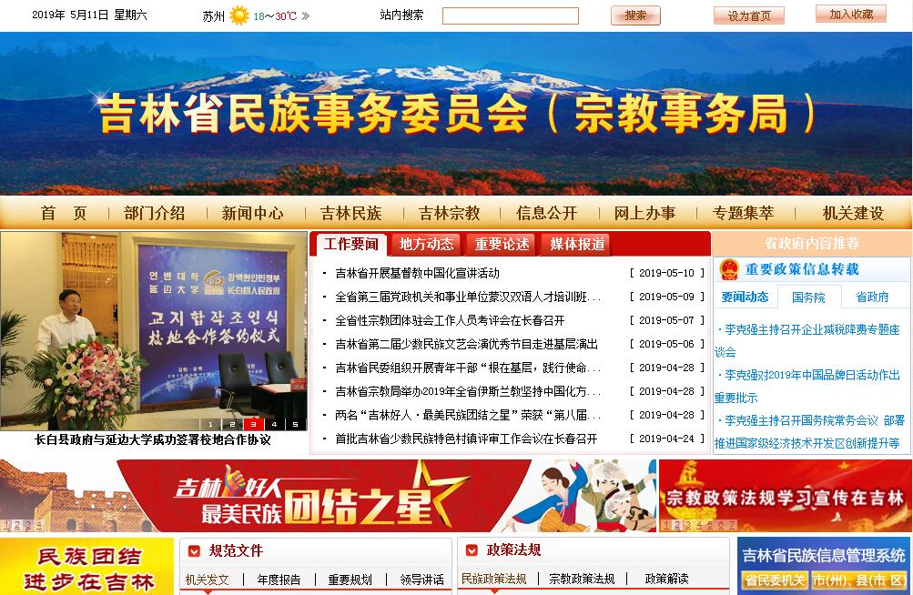2018年12月,经省委办公厅批注(吉厅字[2018]68号),对省民委(宗教局)机构定性调整为“吉林省民族事务委员会(吉林省宗教事务局)是省政府组成部门,为正厅级,归口省委统战部领导”。其主要职责是:(一)贯彻执行党和国家关于民族工作的方针、政策;组织开展民族理论、民族政策和民族工作重大问题的调查研究,提出有关民族工作的政策建议。(二)负责协调推动有关部门履行民族工作相关职责;促进民族政策在经济发展和社会事业有关领域的实施、衔接;对政府系统民族工作进行业务指导。(三)负责起草有关民族事务的地方性法规和省政府规章草案,研究拟订民族相关工作政策,并督促检查落实;指导实施和完善民族区域自治制度建设,保障少数民族的合法权益;协调指导民族自治地方重大庆典活动。(四)研究提出协调民族关系的工作建议,协调处理民族关系中的重大事项;参与协调民族地区社会稳定工作;组织指导民族政策、民族法律法规和民族基本知识的宣传教育工作;促进各民族共同团结奋斗、共同繁荣发展,维护国家统一;组织开展民族团结进步创建活动;承办省政府民族团结进步表彰事宜。(五)负责拟订少数民族事业发展专项规划,监督检查规划实施情况;参与制定少数民族和民族地区经济社会相关领域的发展规划;促进建立和完善少数民族事业发展综合评价监测体系;推进实施民族事务服务体系和民族事务管理信息化建设。(六)研究分析少数民族和民族地区经济、社会事业发展方面的问题并提出特殊政策建议,承办相关事务,协调或配合有关部门处理相关事宜;参与协调民族地区科技发展、对口支援和经济技术合作等有关工作。(七)管理少数民族语言文字工作;指导少数民族语言文字的翻译、出版和民族古籍的搜集、整理、出版工作。(八)负责组织协调民族工作领域有关对外和对港澳台的交流与合作,参与涉及民族事务的对外宣传工作。(九)参与拟订少数民族人才队伍建设规划;联系少数民族干部,协助有关部门做好少数民族干部的培养、教育和使用工作。(十)贯彻执行党和国家关于宗教工作的方针、政策,研究提出贯彻落实的措施;分析研究国内外宗教理论和宗教形势;调查了解省内外宗教发展趋势现状,掌握和分析、汇总宗教方面动态和信息,提出处理宗教领域问题的政策和建议。(十一)起草全省宗教事务工作的地方性法规和省政府规章草案,制定政策措施并推动落实;负责宗教事务工作法律法规和政策落实情况的督促检查以及宣传教育工作。(十二)依法履行宗教事务管理职责。依法保护公民宗教信仰自由和正常的宗教活动;维护宗教界合法权益,促进宗教关系和谐。(十三)指导宗教团体依法依章开展活动;指导和支持宗教团体加强自身建设;帮助宗教团体办好宗教院校;推动宗教团体在宗教界开展爱国主义、社会主义、拥护祖国统一和民族团结的自我教育;办理宗教团体需由政府解决或协调的有关事务。(十四)指导全省各级政府宗教事务部门依法履行管理职能、处理宗教方面的重大事件;对宗教场所的设立和重大宗教活动进行审核、审批;防范利用宗教进行的非法、违法活动,抵御境外利用宗教进行的渗透活动。(十五)负责组织宗教干部和宗教教职人员的教育培训工作。(十六)负责全省宗教方面的外事归口管理工作;组织、指导有关部门和宗教界对外以及对港澳台的宗教交往活动,参与涉及宗教对外宣传工作。(十七)承办省政府交办的其他事项。