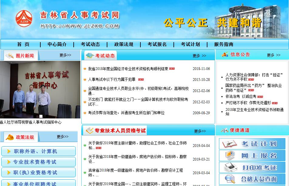 吉林省人事考试中心原名省职称考试工作办公室,是省人社厅直属事业单位,1991年11月20日成立,2010年9月29日更名为省人事考试中心。考试中心编制16个,实有职工17名,中共党员14名。处级领导职数1正2副。聘用人员4名。设科室4个:综合科、考务一科、考务二科和信息科。考试中心主要职责为承担全省由国家统一组织的专业技术人员资格考试的考务工作;承担省直事业单位公开招聘考试的组织实施工作,指导、协调市(州)事业单位公开招聘考试的考务工作。在厅党组的坚强领导下,在部人事考试中心指导下,在厅专业技术人员管理处、厅事业单位人事管理处及有关处室的大力支持下,在全省人事考试系统共同努力下,全省9个市州人社部门建立了考试管理机构,形成了从省到市的制度化、规范化、程序化、信息化的考试工作格局,建立了一支政治可靠、业务精良、作风过硬、纪律严明的专业队伍,打造了“阳光人考”品牌,受到社会的普遍认可。多年来,吉林省人事考试中心认真贯彻执行党的路线方针政策,认真贯彻执行“民生为本,人才优先”的工作总基调,以服务用人部门、服务社会、服务考生为己任,以公开、公平、公正为基本原则,以实现科学考试、公平考试、安全考试为总目标,致力于加强考务制度体系、考试信息化、考试文化等考试核心能力建设,较好地完成了每年20多万人次,50多万科次的专业技术人员资格考试和省直事业单位公开招聘考试笔试工作,树立了人事考试品牌和权威。今后,我们仍将继续努力加强自身建设,推进“放、管、服”,做强“互联网+”,做好每一项考试,为我省人才队伍建设贡献力量。