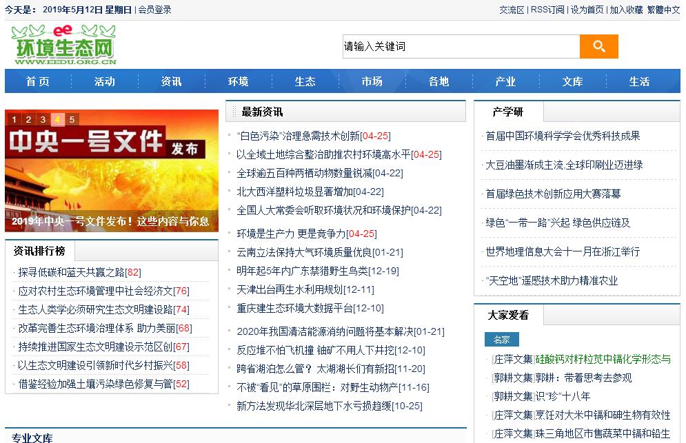 环境生态网(http://www.eedu.org.cn,前身为中国环境生态网)是中国环境学、生态学、环保公益宣传的网上家园!环境生态网创建于2004年4月22日,是集环境学、生态学、环保公益宣传、宣扬绿色生活于一体综合性门户网站。一直以来倡导自由,交流,创新,友爱,分享的学术氛围,致力打造分享环境科学和生态学领域研究进展的信息平台,营造环保公益宣传及绿色生活宣扬的交流空间,实践可持续的环境保护,构建现代生态文明为基准的和谐社会,为建设环境友好型、资源节约型社会贡献绵薄之力!本网站拥有独立主机,具有良好的网站定位,有能力为广大用户提供稳定、优质的网络服务。本网站注重科学性、实用性、专业性和学术性,及时、全面、快速的把环境学、生态学及环保有关方面的信息和资料在互联网上发布,采用合理的科学分类方法,独特的关键词搜索方便会员网上查询,为用户提供了一种全新的、方便、快捷的专业信息服务。本网站主要面向广大科研工作者和科研机构,包括环境科学和生态学研究领域的专家、研究生及大学生,以及高校科研院所企业的科研人员!目前有正式会员超过10万人,其中一半以上具有硕士和博士学历,是环境学、生态学专业人群交流的重要场所。通过网站、社区与博客互动发展的模式,为广大网友提供各类国内外最新的动态信息、内容丰富的资料文献,和一个学术探讨、经验交流、沟通信息、互相促进、共同提高的场地。环境生态网建站的理念:聚集知识精英,共享专业资源,传播环保信息;为社会做点事,为他人做点事,为自己做点事;我们的宗旨是构建环保知识传播交流平台,共同追求成功,共享智慧人生。