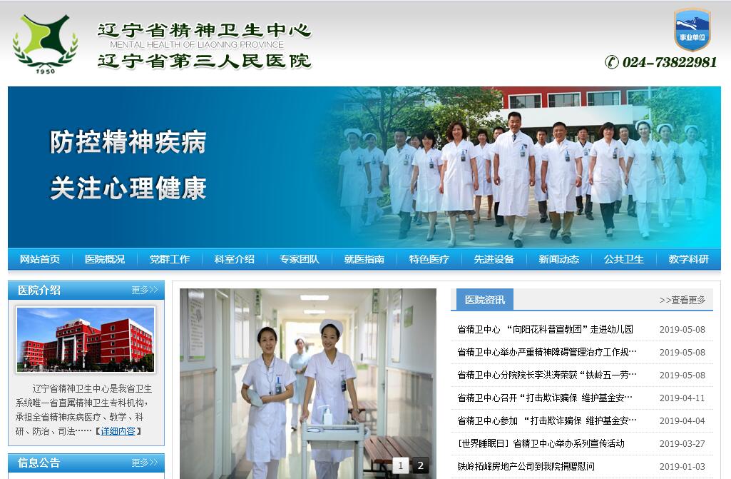 辽宁省精神卫生中心、辽宁省第三人民医院是辽宁省卫生系统唯一省直属精神卫生专科机构,承担全省精神疾病医疗、教学、科研、防治、司法精神医学鉴定等任务。始建于1950年,前身为抗美援朝战勤医院,1954年更名为精神病专科医院。1995年更名为辽宁省精神卫生中心、辽宁省第三人民医院。2011年11月,加挂辽宁省精神疾病预防控制中心的牌子。八十年代,医院在精神疾病防控救治方面,探索出一套成功经验,被称为“铁岭模式”在全国推广。2011年,医院对精神病人的普查救治工作,创造了“社会管理新亮点”。大大降低了精神病人的肇事肇祸率,受到中央综治委和卫生部的一致好评!2016年,在《中国医院最佳专科声誉排行榜》中,医院跻身于东北地区精神医学医院的前五强!60余载,医院多次荣获 “全国医疗先进单位”、“社会公认满意单位”、“辽宁省十佳信用医院”、“百姓信赖医院”、“群众满意的医疗机构”、“全国改善医疗服务先进单位”等诸多殊荣。医院是辽宁省重点精神专科医院,辽宁省精神疾病预防控制中心,辽宁省精神科住院医师规范化培训基地,辽宁省省级继续教育培训基地,北京大学第六医院合作单位,北京安定医院、湖南湘雅二院协同研究网络成员单位,司法部首批驻场法律司法鉴定机构。医院占地面积2.4万平方米,编制床位810张,开设精神科病房、心理病房、物理治疗科、康复科以及法医司法鉴定所等科系,是辽宁省新农合、医保定点医疗单位,已实现网上预约、远程会诊及省内医保、农合即时结报。医院就医环境高雅整洁,以“家”为核心,打造“一科室一文化”,积极推行“人文关爱、亲情服务”,让患者享受尊贵、温暖的就医体验。分院设在开远市老城镇,占地面积3.6万平方米,开放床位400张。