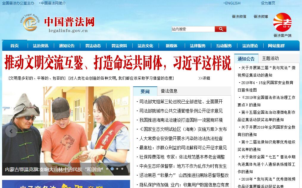 | 网站简介: 中国普法网于2001年6月27日在京建立,由全国普法办公室主办。以提高全民法律素质和社会法治化管理水平,促进依法治国,建设社会主义法治国家进程为宗旨,宣传我国社会主义民主法制建设的成就,展示普法依法治理成果,普及法律知识,弘扬社会主义法治精神为宗旨。中国普法网联系法律界各类优秀人才,博采众长。有专家学者之法理点评,有实际工作者之实例辨析,可供法学理论深造者探访,也可供寻求一般法律知识者点击。中国普法网关注法律问题,贴近群众生活,为法律言,为公正言,为公民提供方便、快捷的法律咨询和法律服务,必将成为法律工作者和广大公民的良师益友。随着我国民主法制建设的不断加强,依法治国基本方略的深入推进,中国普法网已成为全国普法办开展法治宣传教育工作的重要载体。 |