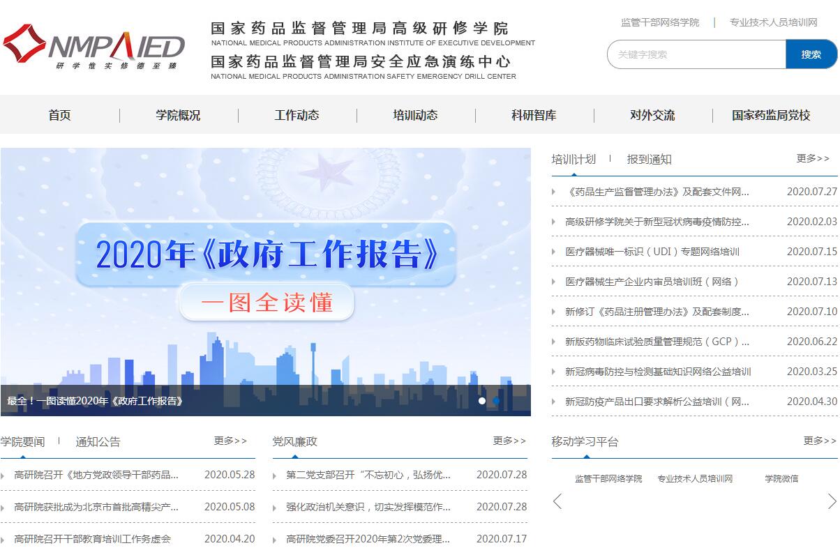 国家药品监督管理局高级研修学院是国家药品监督管理局直属事业单位和唯一的教育培训机构,首批20个国家级专业技术人员继续教育基地之一,药品监管系统唯一以社会科学研究为主的博士后科研工作站,唯一的国家级药品安全应急演练中心,是我国药品监管领域权威性专业教育培训机构。学院位于北京市西站南路,地理位置优越,交通便利,环境整洁。建有完备的教学设施和生活设施,能够同时容纳在院学员200人。学院成立于1985年,2018年经中央编办批准,更名为国家药品监督管理局高级研修学院。主要承担国家药品监督管理局教育培训规划和年度培训计划的组织实施工作;负责药品监管系统教学体系建设(包括学科、课程和教材体系、师资队伍体系),指导地方教育培训业务工作;开展药品监管政策理论及教育科学研究;合作开展研究生学历学位教育;开展教育培训国际交流与合作;围绕药品监管中心工作开展行政相对人培训。学院秉承“强化责任、提升能力、开拓视野、促进创新”的教育培训理念,坚持改革创新,不断探索和把握人才培养规律,充分发挥了药品监管系统干部教育培训的主渠道和主阵地作用,持续推进转型发展。建立了以药品、医疗器械、化妆品、食品安全监管、应急管理和行政管理六大学科为主要内容的独具特色的学科体系,课程设置覆盖药品安全监管全部业务领域,打造了以“优秀师资队伍、精品培训课程、实用培训内容、创新培训形式”为特征的一系列精品培训项目,形成了相对稳定的培训班次。学院还面向社会,开展药品监管法律法规培训和继续教育工作,同国内著名高校合作开展学历、学位教育。近年来,学院平均每年举办各类培训班近300余期,年培训人数超过4万人次。面向全系统的国家食品药品监管干部网络学院及面向食品药品行业专业技术人员的网络教育培训平台开通上线。2011年,学院被人力资源和社会保障部遴选批准为首批国家级专业技术人员继续教育基地;2013年,被批准设立博士后科研工作站。学院恪守“善学、求实、鼎新”的价值观,按照“研学惟实,修德至臻”的院训,不断加强人才队伍和教师队伍建设,完善各项规章制度,提升学院教学水平和综合管理水平。学院坚持教学、科研并重的办学理念,加强药品监管重大政策和教育培训理论研究。注重人才的引进与培养,专职师资队伍不断壮大。吸纳系统内外知名专家、学者兼职教学。目前,已经形成了一支由300余人组成的素质优良、结构合理,适应新时期药品监管形势的专兼结合的核心师资队伍。统筹规划,大力推进教材体系建设,已基本建立与教育培训相适应,涵盖面广、门类齐全、标准规范、特色鲜明的权威性教材体系。在国家药品监督管理局党组的坚强领导和各方面的大力支持下, “十三五”期间,学院将全面实施《三年建设规划和十年远景目标》发展战略,推进事业不断创新和发展,矢志成为国内一流、国际知名的权威性专业教育培训机构,为我国药品监管事业发展和干部队伍建设做出新的贡献。