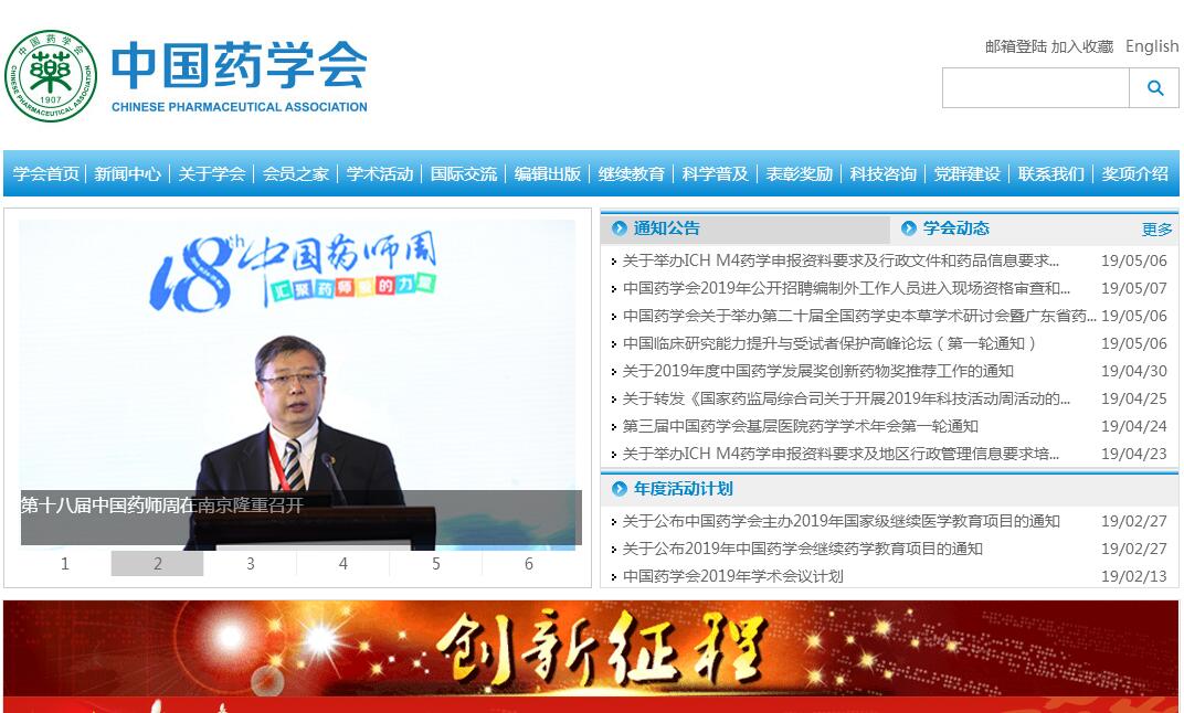 中国药学会成立于1907年,是我国近代成立最早的学术团体之一,是全国药学工作者自愿组成并依法登记成立、具有法人资格的全国性、学术性、非营利性社会组织。其宗旨是团结和组织广大会员和药学工作者,推动实施科教兴国战略、人才强国战略和可持续发展战略,促进药学科学技术普及、繁荣与发展,促进药学人才成长与提高,促进药学科学技术与产业结合,为经济社会发展服务,维护广大会员和药学工作者的合法权益。在中国科协、国家药品监督管理局、民政部坚强领导下,学会结合自身特点,注重政治理论学习、实践创新、经验总结、效果督察,充分发挥学会理事会党委政治核心、思想引领和组织保障作用,有效发挥秘书处党支部战斗堡垒作用和党员先锋模范作用,有力推动了学会事业健康发展、科学发展。2017年学会召开第二十四次全国会员代表大会,产生二十四届理事会,现任理事长为全国政协教科卫体委员会副主任孙咸泽先生。现有普通会员12万余人,高级会员3700余人,单位会员71家,13个工作委员会,28个专业委员会,主办28种学术期刊,2个经济实体。现为中国科协团体会员,国际药学联合会、亚洲药物化学联合会成员。学会业务主管单位为中国科学技术协会,支撑单位为国家药品监督管理局。学会办事机构为秘书处,内设办公室(会员服务部)、学术部(科技评价部)、编辑出版部、科普部(继续教育部)、国际交流部、财务部等部门。学会主要任务是开展国内外药学科学技术的学术交流,活跃学术思想,促进学科发展;发展与世界各国和地区药学学术团体、药学工作者的友好交往与合作;编辑出版发行药学学术、技术、信息、科普等各类期刊,组织编写药学图书资料及电子音像制品;举荐优秀药学科技人才,依照有关规定经批准,表彰奖励优秀药学科技工作者;开展对会员和药学工作者的继续教育与培训工作;组织开展药学及相关学科的科学技术知识普及与宣传,开展医药产品展览、推荐及宣传活动,提供医药技术服务与推广科研成果转化等;反映会员和药学工作者的意见和建议,维护其合法权益;建立和完善药学科学研究诚信监督机制,促进科学道德和学风建设;接受政府委托,承办有关药学发展、药品监管等有关事项,组织会员和药学工作者参与国家有关的科学论证、科技与经济咨询,开展医药科技评价。举办为会员服务的事业和活动;依法兴办符合本会业务范围的社会公益事业等。2010年我会获民政部全国先进社会组织,中宣部、科技部、中国科协全国科普先进单位;2011年获中国科协高层次人才库建设工作先进单位;2011-2017年连续7年获中国科协科普工作优秀学会;2012年、2015年分别获中国科协能力提升专项优秀科技社团二等奖;2015年被民政部评定为5A等级社会组织;2016年组织编写的《全民健康十万个为什么》获国家科技进步二等奖;2016年学会科技开发中心获全国妇联全国三八红旗集体;2017年获中国科协学会综合治理改革工程项目等。2014年学会二十三届理事长桑国卫院士获国际药学联合会药学科学终身成就奖。中国特色社会主义进入新时代,我会将认真贯彻落实习近平新时代中国特色社会主义思想和党的十九大精神,在中国科协、国家药品监督管理局、民政部坚强领导下,广泛团结和动员广大会员和药学工作者,认真履行为科技工作者服务、为创新驱动发展服务、为提高全面科学素质服务、为党和政府科学决策服务的职责定位,不忘初心,牢记使命,瞄准建设世界一流学会远大目标,为实现“两个一百年”奋斗目标、实现中华民族伟大复兴的中国梦作出新贡献!