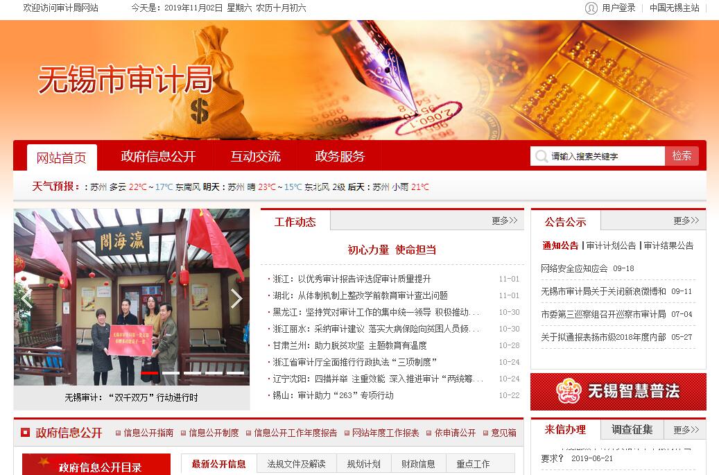 无锡市审计局是无锡市人民政府组成部门。主要职责(一)主管全市审计工作。贯彻执行国家审计方针政策和法律法规,参与起草审计、财政经济方面的地方性法规、规章草案,提出相关政策建议;负责对市财政收支和法律、法规规定属于审计监督范围的财务收支的真实、合法和效益进行审计监督,维护财政经济秩序,提高财政资金使用效益,促进廉政建设,保障全市经济和社会健康发展;对审计、专项审计调查的结果承担责任,并负有督促被审计单位整改的责任。(二)制定并组织实施审计工作发展规划,制定并组织实施年度审计计划,对直接审计、审计调查依法进行审计评价,做出审计决定或提出审计建议。(三)向市政府和审计厅提出年度市级预算执行和其他财政收支情况的审计结果报告;受市政府委托向市人大常委会提出市级预算执行和其他财政收支情况的审计工作报告、审计发现问题的纠正和处理结果报告;向市政府和审计厅报告对其他事项的审计与专项审计调查情况及结果;依法向社会公布审计结果;向市政府有关部门和所辖市(县)、区政府通报审计情况及审计结果。(四)直接审计下列事项,出具审计报告,在法定职权范围内做出审计决定或向有关主管机关提出处理处罚的建议:1.市级预算执行情况和其他财政收支,市直各部门预算的执行情况、决算和其他财政收支。2.所辖市(县)、区政府预算的执行情况、决算和其他财政收支,市级财政转移支付资金。3.使用市级财政资金的事业单位和社会团体的财务收支。4.市级政府投资和以市级政府投资为主的建设项目的预算执行情况及决算。5.市属国有企业和金融机构、市政府规定的市属国有资本占控股或主导地位的企业和金融机构的资产、负债及损益。6.市政府部门、所辖市(县)、区政府管理和其他单位受市政府及其部门委托管理的社会保障基金、社会捐赠资金及其他有关基金、资金的财务收支。7.根据审计署授权,对国际组织和外国政府援助、贷款项目的财务收支进行审计监督。8.法律、行政法规和地方性法规规定应由市审计局审计的其他事项。(五)按规定对市管领导干部及依法属于市审计局审计监督对象的其他单位主要负责人实施经济责任审计。(六)组织实施对国家财经法律、法规、规章、政策和宏观调控措施执行情况、财政预算管理或国有资产管理使用等与国家和市财政收支有关的特定事项进行专项审计调查。(七)依法检查审计决定执行情况,督促纠正和处理审计发现的问题,依法办理被审计单位对审计决定提请行政复议、行政诉讼或市政府裁决中的有关事项。协助配合有关部门查处相关重大案件。(八)指导和监督内部审计工作,核查社会审计机构对依法属于审计监督对象的单位出具的相关审计报告。(九)依法指导和监督下级审计机关的业务,组织下级审计机关实施特定项目的专项审计或审计调查,纠正或责成纠正下级审计机关违反国家规定做出的审计决定。(十)指导和推广信息技术在全市审计领域的应用,组织建设全市审计信息系统。(十一)承办市政府和审计厅交办的其他事项。
