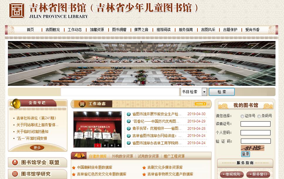 吉林省图书馆成立于清宣统元年(1909年),馆舍设在当时的吉林省府所在地吉林市。新中国成立后,随吉林省省会于1954年迁至长春市,选址在新民大街1162号,于1958年建成并试运行,1960年正式开馆。2008年9月,省委、省政府决定移址建设新馆,2010年8月开工建设,2013年底新馆建成,2014年9月28日正式开放投入试运行。吉林省图书馆新馆坐落于人民大街10055号,总建筑面积53713平方米、总占地面积4.47万平方米,地下一层,地上五层,设计使用年限100年。藏书规模为500万册、阅览座位3000个、网络结点4000个、日均接待读者能力6000人次。吉林省图书馆是全省文献信息收藏和服务中心,全省文献资源采购编目中心,信息网络建设中心,文献资源共享中心,图书馆间协作协调和学术研究交流中心。承担着为党政领导机关决策,为科研、教育及企事业单位提供信息咨询服务,为广大人民群众提供文献借阅服务,为全民提供终身教育服务的重要职能。现有馆藏文献350余万册和海量数字化文献信息资源,学科门类齐全,文种涉及中、英、日、俄等。其中古籍线装书43万册,唐人写经、宋元明刻本、稿抄本及名家批校题跋本堪称稀世珍品;民国书刊12万册,伪满资料5万册,具有较高的史料价值。吉林省图书馆新馆应用先进技术、智能化管理,为读者提供便捷的服务。综合报告厅、多功能厅、数字电影放映室、LED大屏幕、4D影院等服务的开展为读者提供了展示交流的平台;地源热泵、光伏发电的使用使新馆更加节能、环保;智能楼宇控制、信息发布系统等技术的应用使新馆管理和服务更加方便和人性化;RFID技术的应用方便读者自助借还,提升了文献管理和读者服务的质量及效率。吉林省图书馆新馆开馆以来,秉承“学术立馆,服务兴馆,人才强馆,合作活馆”的理念,积极开展系列读者活动,让读者能够平等、免费、无障碍地享受图书馆的服务。着力打造的“文化吉林”服务品牌,包括“文化吉林”讲坛、“文化吉林•天下书香读书会”、各类展览展示活动、公共文化交流推广平台各类演出活动等,每年累计活动达100多场次;吉林省图书馆联盟、农民工子女阅读基地、“吉林云图”移动阅读、全省“两会”信息咨询服务等服务也成为吉林省图书馆品牌项目,全年常态化开展服务活动200余次;在外延服务方面,先后建立分馆和流通站23个,百姓书房120多家,学生书房65个,与省直机关党工委联合建立“卫星图书馆”10家,得到社会各界的广泛赞誉。在建设文化强省的进程中,吉林省图书馆致力于把新馆打造成市民的学习中心、交流中心与文化中心,给春城人民营造一个充满知识、智慧和阳光的精神家园,在倡导全民阅读、共建书香社会中贡献自己的力量!