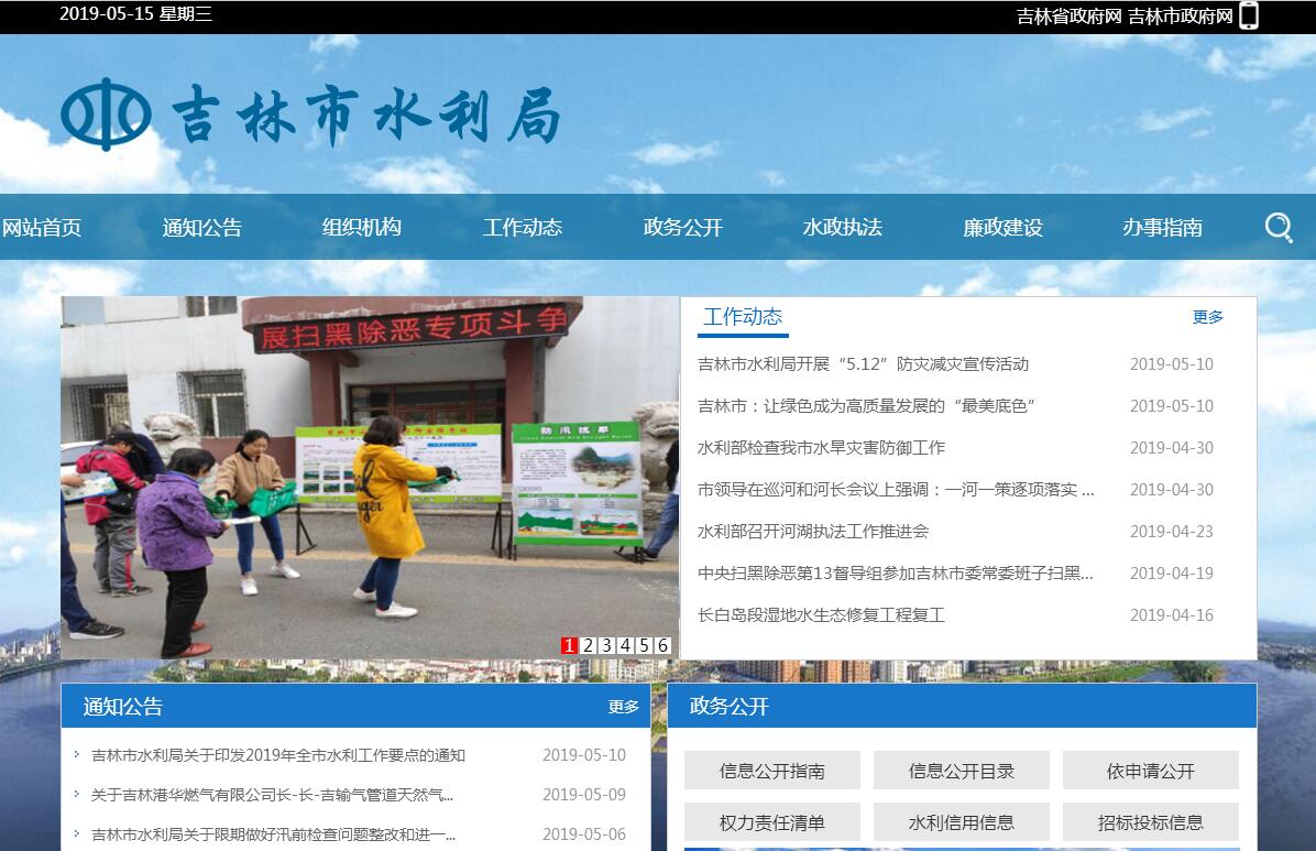 吉林市水利局主要职责:(一)贯彻实施国家、省有关水利、水产工作的方针、政策和法律、法规;拟订全市水利、水产工作的发展战略和中长期规划,组织起草有关法规、规章并监督实施。(二)统一管理全市水资源(含空中水、地表水、地下水)。组织拟订全市和跨县(市)区水长期供求计划、水量分配方案并监督实施;组织有关国民经济总体规划、城市规划及重大建设项目的水资源和防洪的论证工作;组织实施取水许可制度和水资源费征收制度;发布全市水资源公报。(三)拟订节约用水政策、编制全市节约用水规划,制定有关标准,组织、指导和监督节约用水工作。(四)按照国家和省资源与环境保护的有关法律、法规和标准,拟订全市水资源保护规划;组织水功能区的划分和向饮水区等水域排污的控制;监测江河湖库的水量、水质,审定水域纳污能力;提出限制排污总量的意见。(五)组织指导全市水政监察和水行政执法;协调并仲裁部门间和县(市)区间的水事纠纷。(六)拟订全市水利行业的经济调节措施,会同有关部门对水利资金的使用进行宏观调节;指导全市水利行业的供水、水电及多种经营工作;研究提出有关水利的价格、税收、信贷、财务等经济调节意见。(七)编制、审查全市大中型水利基建项目建议书和可行性研究报告;组织全市水利、水产、水土保持科学研究和技术推广工作;贯彻执行国家和省颁布的水利行业的技术质量标准和水利工程规程、规范,结合本市实际拟订相关规定和细则,并监督实施。(八)组织、指导全市水利设施、水域及其岸线的管理与保护,组织指导主要江河湖库的治理与开发;组织建设和管理具有控制性的或跨县(市)区的重要水利工程;组织指导水库、水电站大坝的安全监管。(九)指导全市农村水利工作;组织协调全市农田水利基本建设、农村水电电气化和乡镇供水工作。(十)组织协调全市水土保持工作;研究制定水土保持中长期规划;组织水土流失的监测和综合防治。(十一)负责全市水利方面的科技和外事工作;指导全市水利队伍建设。(十二)承担市人民政府防汛抗旱指挥部的具体工作。组织、协调、监督、指导全市防洪工作;对主要江河和重要水利工程实施防汛抗旱调度。(十三)拟订全市水产发展战略和中长期规划,组织、指导全市水产工作;组织、指导全市渔业基础设施建设与管理;负责保护渔业水域生态环境和水生野生动植物工作;代表国家行使渔船检验和渔政、渔港监督管理权;协调处理重大渔事纠纷。(十四)承办市政府交办的其他事项。