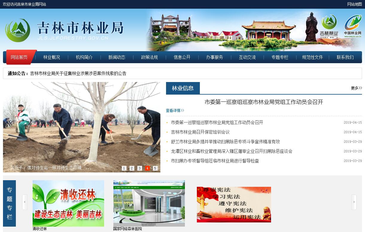 吉林市林业局主要职责:(一)宣传、贯彻党和国家关于林业及其生态建议的方针、政策和法律、法规,研究拟订相关政策、法规的实施细则,加强林业法制建设;制定实施全市林业发展战略、规划和计划。(二)组织指导植树造林、封山育林和以植树种草等生物措施防治水土流失工作。(三)负责森林资源管理,掌握资源变化,检查监督森林采伐限额执行情况;负责林政管理,并指导林业行政案件查处工作。(四)检查指导国有林场(苗圃)、林业站和林木种苗管理工作;组织、指导发展乡村林业。(五)组织全市森林防火和森林病虫鼠害防治预测及森林植物检疫工作;承担市人民政府森林防火指挥部的具体工作;组织、指导陆生野生动植物资源的管理和保护以及合理开发利用;组织、指导全市森林公园、自然保护区的建设和管理。(六)指导审计监督林业系统财务工作,组织管理林业基金,配合有关部门搞好林产品价格、税收、信贷等管理工作。(七)组织林业科学技术研究、新技术开发和新成果的推广应用;规划林业专业人才培养。(八)组织指导全地区林业分类经营工作。(九)宣传贯彻有关绿化工作的法律、法规和方针政策;制定全市总体绿化规划,组织协调各部门全市义务植树、造林绿化工作;承担市绿化委员会的具体工作。(十)承办市政府交办的其他事项。