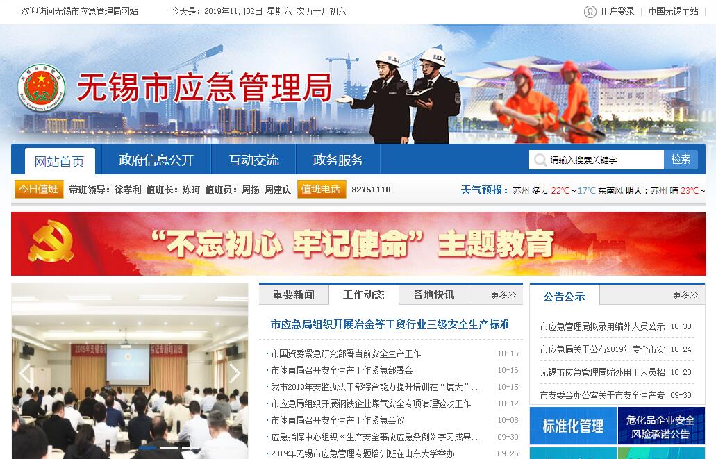 无锡市应急管理局主要职责:(一)负责应急管理工作,指导全市各级各部门应对安全生产类、自然灾害类等突发事件和综合防灾减灾救灾工作。负责安全生产综合监督管理和工矿商贸行业安全生产监督管理工作。(二)拟订应急管理、安全生产等政策,组织编制市应急体系建设、安全生产和综合防灾减灾规划。起草相关地方性法规、规章草案,组织制定相关规程、标准并监督实施。(三)指导应急预案体系建设,建立完善事故灾难和自然灾害分级应对制度。组织编制市总体应急预案和安全生产类、自然灾害类专项预案。综合协调应急预案衔接工作,组织开展预案演练,推动应急避难设施建设。(四)牵头建立统一的应急管理信息系统,负责信息传输渠道的规划和布局。建立监测预警和灾情报告制度,健全自然灾害信息资源获取和共享机制,依法统一发布灾情。(五)组织指导协调安全生产类、自然灾害类等突发事件应急救援。承担市应对较大灾害指挥部工作。综合研判突发事件发展态势并提出应对建议。协助市委、市政府指定的负责同志组织较大灾害应急处置工作。(六)统一协调指挥各类应急专业队伍,建立应急协调联动机制,推进指挥平台对接。提请、衔接解放军和武警部队参与应急救援工作。(七)统筹应急救援力量建设,负责消防、森林火灾扑救、抗洪抢险、地震和地质灾害救援、生产安全事故救援等专业应急救援力量建设。指导综合性应急救援队伍、各级各部门及社会应急救援力量建设。(八)负责消防管理工作,指导全市各级消防监督、火灾预防、火灾扑救等工作。(九)指导协调森林火灾、水旱灾害、地震和地质灾害等防治工作。负责自然灾害综合监测预警工作,指导开展自然灾害综合风险评估工作。(十)组织协调灾害救助工作,组织指导灾情核查、损失评估、救灾捐赠工作。管理、分配上级下拨和市级救灾款物并监督使用。(十一)依法行使安全生产综合监督管理职权,指导协调、监督检查市(县)区政府和市政府有关部门安全生产工作。组织开展安全生产巡查、考核工作。(十二)按照分级、属地原则,依法监督检查工矿商贸生产经营单位贯彻执行安全生产法律法规情况及其安全生产条件和有关设备(特种设备除外)、材料、劳动防护用品的安全生产管理工作。依法组织并指导监督实施安全生产准入制度。负责危险化学品安全监督管理综合工作和烟花爆竹安全生产监督管理工作。(十三)依法组织指导生产安全事故调查处理,监督事故查处和责任追究落实情况。组织开展自然灾害类突发事件的调查评估工作。(十四)开展应急管理、安全生产等方面的对外交流与合作,组织参与安全生产类、自然灾害类等突发事件的跨区域救援工作。(十五)制定应急物资储备和应急救援装备规划并组织实施,会同市粮食和物资储备局等部门建立健全应急物资信息平台和调拨制度,在救灾时统一调度。(十六)负责应急管理、安全生产、防灾减灾宣传教育和培训工作。组织指导相关科学技术研究、推广应用和信息化建设工作。(十七)完成市委、市政府交办的其他任务。