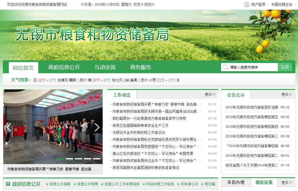 无锡市粮食和物资储备局主要职责:(一)组织实施国家、省粮食流通和物资储备的法律法规和规章。拟定全市粮食流通和物资储备管理的地方性法规、规章草案。研究提出粮食流通和物资储备体制改革方案并组织实施。(二)根据国家和全省储备总体发展规划和品种目录,研究提出全市储备发展规划、储备品种目录的建议。组织实施全市战略和应急储备物资的收储、轮换和日常管理,落实有关动用计划和指令。(三)管理全市粮食和相关重要物资储备。负责市级储备粮、储备物资行政管理。监测粮食和战略物资供求变化并预测预警,承担全市粮食流通宏观调控的具体工作,承担粮食安全责任制考核日常工作。(四)根据省市储备发展规划,统一负责储备基础设施建设和管理,制定规划并组织实施,管理有关储备基础设施和粮食流通设施市级投资项目。(五)组织实施粮食和物资储备仓储管理有关技术标准和规范。负责全市粮食流通、加工行业安全生产工作的监督管理,承担物资储备承储单位安全生产的监管责任。(六)负责粮食流通行业管理,制定行业发展规划、政策,组织落实粮食流通和物资储备有关技术标准和规范。负责粮食和物资储备的对外合作与交流。(七)负责对管理的政府储备、企业储备以及储备政策落实情况进行监督检查。负责粮食流通监督检查,负责粮食收购、储存、运输环节粮食质量安全和原粮卫生的监督管理,组织实施全市粮食库存检查工作。(八)完成市委、市政府交办的其他任务。