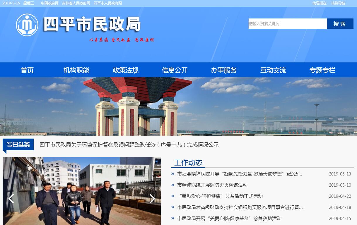 四平市民政局主要职责:(一)贯彻执行国家、省、市有关民政工作法律、法规、规章和政策;起草相关地方性法规、规章草案和规范性文件,拟订全市民政事业发展规划和工作计划,经批准后组织实施;指导基层民政组织建设和民政工作。(二)负责市本级社会团体、民办非企业单位的登记、评估和管理工作,依法监督社会组织活动;指导全市社会组织的培育、发展。(三)负责全市军人优待抚恤和烈士褒扬工作,审核伤残等级,承办烈士称号的报批工作,指导烈士纪念建筑物的管理工作;组织指导拥军优属、拥政爱民工作;承担市双拥领导小组办公室的日常工作。(四)负责复员、退伍军人、转业士官和军队离退休干部、军队无军籍退休、退职职工的接收安置、服务管理工作;组织、指导退役士兵职业教育和技能培训工作;协调、指导全市军供管理和保障工作,指导军用饮食供应站、光荣院和军队离退休干部服务管理机构的建设、管理工作;承担市退伍军人安置工作。(五)组织、指导全市救灾减灾工作;核查上报灾情,接收、管理、分配、监督救灾物款;组织制定自然灾害救助应急预案,指导避灾安置场所建设、管理工作;指导灾区进行灾民生活救济和开展生产自救;组织、指导社会救灾捐赠工作。(六)组织、指导全市社会救助工作;统筹城乡社会救助体系建设;指导、监督全市实施居民最低生活保障、医疗救助、临时救助工作;负责城市生活无着的流浪乞讨人员的救助工作;负责全市低收入家庭认定工作。(七)指导全市社会福利事业建设、养老服务体系建设;组织、指导养老机构的行业管理和社会化养老服务、居家养老服务工作;指导农村五保供养工作;负责慈善事业的发展和慈善组织的监督、管理工作;组织、指导社会捐助工作;负责有关的对口支援和结对帮扶工作。(八)指导城乡社区建设、村(居)民委员会建设、社区工作者队伍建设。(九)承办行政区划有关工作;负责行政区域界线的勘定和日常管理工作,调查处理行政区域边界争议;负责全市地名管理工作。(十)负责殡葬管理和婚姻登记管理工作;负责儿童收养登记工作。(十一)负责全市各类社会福利企业的管理和残疾职工的权益保障工作。(十二)负责福利资金的使用管理。(十三)会同有关部门拟订全市社会工作人才发展规划、工作计划和政策,推进全市社会工作人才队伍建设和相关志愿者队伍建设。