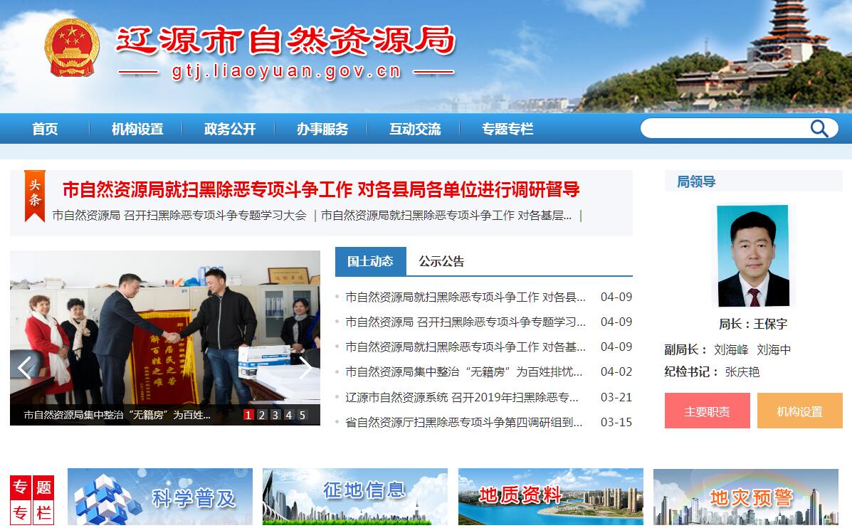 辽源市自然资源局主要职责:(一)承担保护与合理利用土地资源、矿产资源等自然资源的责任。组织拟订全市国土资源发展战略和规划;开展国土资源经济形势分析,研究提出全市国土资源供需总量平衡的政策建议;参与全市经济运行、区域协调、城乡统筹的研究并拟订涉及国土资源的调控政策和措施;编制并组织实施国土规划;拟订国土资源领域资源节约集约利用和循环经济的政策措施并组织实施。(二)承担规范国土资源管理秩序的责任。贯彻执行国家土地资源、矿产资源等自然资源管理的法律法规,研究拟订相关政策;拟订土地资源、矿产资源管理的技术标准、规程、规范和办法并组织实施;指导全市国土资源行政执法工作,调查处理国土资源违法案件。(三)承担优化配置国土资源的责任。编制和组织实施全市土地利用总体规划、土地利用年度计划、土地整理复垦开发规划和其他专项规划、计划;组织编制全市矿产资源、地质勘查和地质环境等规划以及地质灾害防治、矿产环境保护等其他有关的专项规划并监督检查;指导和审核县乡级土地利用总体规划、县级矿产资源规划;参与报请国家或省审批的涉及土地、矿产相关规划的审核。(四)负责规范国土资源权属管理。依法保护土地资源、矿产资源等自然资源所有者和使用者的合法权益;组织承办和调处重大权属纠纷;指导土地确权;承担各类土地登记资料的收集、整理、共享和汇总管理,提供社会查询服务。(五)承担全市耕地保护的责任。拟订并实施全市耕地保护政策,组织实施基本农田保护,监督落实占用耕地补偿制度;指导和组织落实未利用土地开发、土地整理、土地复垦和耕地开发的监督工作;组织实施土地用途管制、农用地转用和土地征收征用;承担报国家和省审批各类用地的审核、报批工作。(六)承担及时准确提供全市土地利用各种数据的责任。依据地籍管理办法,组织土地资源调查、地籍调查、土地统计和动态监测,指导地方地籍调查、登记和土地分等定级工作。(七)承担节约集约利用土地资源的责任。管理和监督城乡建设用地供应、政府土地储备、土地开发和节约集约利用;研究拟订并按规定组织实施土地使用权出让、转让、租赁、交易、作价出资和政府收购管理办法;建立基准地价、标定地价等政府公示地价制度;会同农业部门监督管理农村集体建设用地使用权的流转;执行并监督国家国有土地划拨用地目录、禁止和限制供地目录、划拨用地目录;承担报市政府审批改制企业的国有土地资产的处置。(八)承担规范国土资源市场秩序的责任。监测土地市场和建设用地利用情况;监管地价;规范和监管矿业权市场,组织对矿业权人勘查、开采活动进行监督管理;规范和监管国土资源相关社会中介组织和行为,依法查处违法行为。(九)负责矿产资源开发的管理。依法管理矿业权的审批登记发证和转让审批登记;负责市内规划矿区和对国民经济具有重要价值矿区的管理;承担特定矿种、优势矿产的开采总量控制及相关管理工作;组织编制实施矿业权设置方案。(十)负责地质勘查行业和矿产资源储量管理。组织实施全市地质调查评价、矿产资源勘查;管理市级地质勘查项目,管理地质勘查资质、地质资料、地质勘查成果;统一管理市级公益性地质调查和战略性矿产勘查工作。(十一)承担地质环境保护的责任。组织实施矿山地质环境恢复治理和保护规划、计划;监督管理和审查申报具有重要价值的古生物化石、地质遗迹、矿业遗迹等保护区、保护地;依法管理水文地质、工程地质、环境地质勘查和评价工作;监测、监督防治地下水过量开采和污染;承担城市地质、农业地质、旅游地质的勘查、评价工作;负责地热水、矿泉水矿产资源的勘查、开发、保护和规划管理。(十二)承担地质灾害预防和治理的责任。制定并组织实施重大地质灾害突发事件应急预案,指导应急处置,组织、协调、指导和监督地质灾害防治工作。(十三)依法征收土地、矿产资源收益,规范、监督资金使用;拟订土地、矿产资源参与经济调控的政策措施;依法组织土地、矿产资源专项收入的征管,配合有关部门拟订收益分配制度;参与管理国家和省出资形成的矿业权权益;负责有关资金、基金的预算和财务、资产管理与监督;管理国家和省、市财政拨付的专项资金及其他资金并监督使用。(十四)推进国土资源科技进步。拟订全市国土资源科技发展、人才培养规划和计划;负责国土资源科技项目的审查和推荐工作;开展土地和矿产资源保护和管理方面的对外合作与交流;组织和实施国土资源信息化和信息资料的公共服务。(十五)承办市政府交办的其他事项。