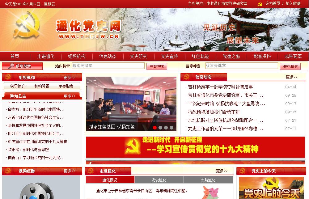 | 网站简介: 通化党史网由中共通化市委党史研究室主办。中共通化市委党史研究室是市委直属事业单位,是通化地方党史研究部门和市委工作部门。其主要职责:一、贯彻落实中央和省、市委有关党史工作的方针、政策;制定全市党史工作规划并组织实施;指导和协调各县市区党史部门工作。二、负责通化地方党史资料的征集、研究和编纂;负责编写出版通化地方党史及其重要的专题党史书刊、人物传记。三、承担中央、省委党史研究室下达的党史工作任务,为中央、省委和通化市委解决有关党史问题提供资料和意见;完成市委交办的党史方面的有关工作。四、负责审计全市以地方党史为主要内容的书刊、重要文章及影视作品。五、协同有关部门开展党史教育、革命传统教育和爱国主义教育。六、组织地方党史工作经验交流、学术研究,培训党史工作业务骨干。七、指导通化市中共党史学会工作,完成全国和省党史学会交办的任务。 |