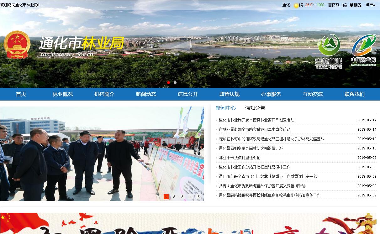 通化市林业局是市政府主管全市林业工作的行政职能部门,主要职能是:㈠宣传贯彻党和国家有关林业的方针、政策、法律、法规,研究草拟地方性林业政策法规及实施细则,并负责林业行政执法及监督检查。㈡研究编制全市林业森林培育、保护、经营、开发、利用等林业生产建设的中长期规划和年度计划并监督实施。㈢组织开展植树造林、封山育林以及国土绿化工作;指导全市、国有林场(苗圃)、个体苗圃、林业工作站及集体林场、私有林场的建设和管理。㈣负责全市森林资源的管理;编制及监督执行森林采伐限额;负责木材运输、木材加工及经营管理和监督工作;负责全市的林权、林地管理工作。㈤组织协调、指导监督全市森林防火和森林公安工作,侦查处理森林火灾及破坏森林资源和野生动植物资源的行政和刑事案件。㈥负责全市野生动植物资源的保护和合理开发利用工作;负责森林濒危物种进口管理以及国家保护的野生动物及其产品进出口审报和审批;负责森林病虫鼠害防治和森林植物检疫的监督和指导工作;负责全市湿地管理和保护工作。㈦制定全市林业科技发展规划,组织安排重大科研项目,负责新技术、新成果开发、推广和应用;提供科技信息服务;㈧指导、监督全市林业财务工作;负责各县(市、区)和直属单位林业基金的审计和管理工作。㈨负责市林业局直属单位党务、纪检、监察、综合治理、计划生育、信访等项工作;负责机关、企事业单位人事管理和老干部管理工作。㈩承办省林业厅和市委、市政府交办的其他事项。