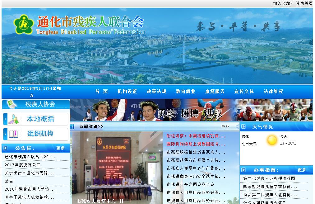 通化市残疾人联合会设4个内设机构: (一)办公室(市政府残工委秘书处)。负责政府接洽、事务管理、公务接待工作;负责规范性文件、规划、重要文件、报告起草工作;开展调研工作,为政府救助残疾人提供决策依据和建议;负责会务的组织安排和议定事项的督办;负责文秘、档案、保密、安全保卫和机关财务与后勤保障工作;负责残疾人事业的统计、报表,组织协调残疾人事业的国际交流,办理涉外事务;管理机关和直属事业单位人事和劳动工资,办理职称评聘,开展干部培训,管理离退休干部;组织开展科研活动,实施信息化、网络化、办公自动化建设规划;负责开展法制工作;承担市政府残疾人工作委员会的日常工作。(二)教育就业部。制定和实施残疾人教育工作计划,促进和开展残疾人学前教育、义务教育、职业教育、成人教育;负责特殊文字和手语的学习及普及、推广,推动和促进残疾人特教工作的开展;协调有关部门及社会办学机构,具体实施残疾人职业培训,指导县(市、区)残联系统做好学员调查、输送、评审、评定和办证工作;制定残疾人劳动就业工作计划,组织实施残疾人分散按比例就业,指导残疾人兴办福利企业,协调落实残疾人福利企事业优惠政策;负责残疾人劳动服务网络的建设和开发就业岗位,指导残疾人自主择业、灵活就业、自愿组织就业;辅导盲人就业,管理盲人按摩及相关行业;组织实施残疾人康复扶贫贷款定向使用,开展残疾人扶贫解困工作。(三)康复部。负责制定和实施残疾人康复工作计划,协调和指导残疾人康复机构的业务工作;开展肢体残疾康复、视力残疾康复、聋儿康复、社区康复服务和残疾预防工作;指导残疾人用品用具开发、研制、供应及相关服务;开展学术交流;组织康复人员培训;指导残疾人康复行业协会开展活动;负责市残疾人康复工作办公室的日常工作。(四)组织联络部(宣传文体部)。负责残疾人组织的自身建设,指导基层残联工作,协助理事会管理县级残联领导班子;培训残疾人工作者;负责调查残疾人状况,管理残疾人证核发工作;负责来信来访工作;指导各类残疾人协会工作;指导社区残疾人协会工作;协调落实优惠政策,联络、教育、培养残疾人,表彰优秀残疾人和助残先进集体、先进个人及优秀残疾人工作者;负责开展法制工作,配合有关部门开展行政执法检查,协调推动无障碍设施建设;协助有关部门研究制定残疾人工作政策、规章,维护残疾人合法权益;宣传残疾人事业和法律法规,组织提供残疾人特需物品和精神文化产品,开展残疾人文化、艺术、体育活动;开展助残活动;负责市残疾人事业新闻促进会的日常工作。