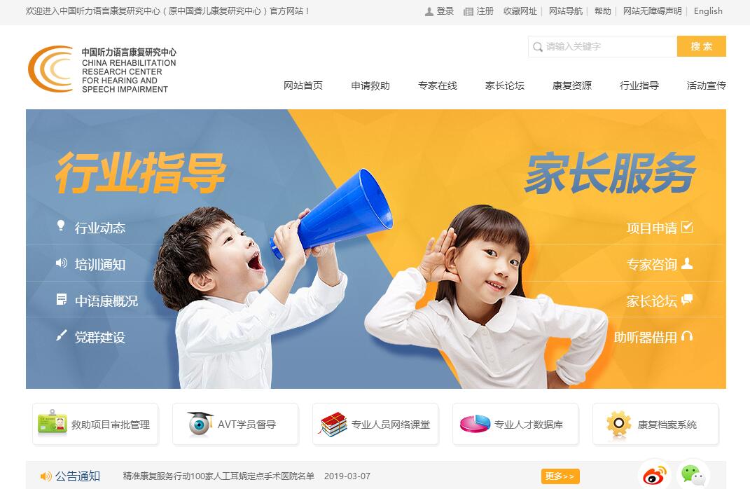 中国听力语言康复研究中心(以下简称“中心”)成立于1983年,是我国唯一一所国家级听力语言康复机构,是全国听力语言康复工作的技术资源中心和行业管理机构,同时也是世界卫生组织和听力国际等国际机构的国家合作中心。 “中心”成立三十年来,为改善我国聋儿康复状况,推动全国听力语言康复事业健康发展做出了突出贡献。协助政府相关部门制订并组织实施了五个全国听力语言康复五年规划,帮助近40万名聋儿得到不同程度康复;推动建立省、地、县级听力语言康复机构千余家。与相关高校合作开创了我国听力语言康复相关专业学历教育,并常年开展基层听力语言康复专业人员在职培训。“中心”努力发挥国家级听力语言康复机构的技术引领作用,承担完成各类科研任务 40余项,开发完善了我国听力残疾儿童康复行业的方法、技术及相关标准。“中心”的专业技术实力,特别是推动全国听力语言康复事业发挥的积极作用得到党和政府以及国际社会充分认可。2007年,“中心”与世界卫生组织共同举办了首届国际听力障碍预防与康复大会,倡议设立了国际爱耳日。2013年,在“中心”的成功推动下,世界卫生组织正式确立3月3日为“国际爱耳日”。 “中心”主要职能是:1、面向全国提供听力残疾预防及听力语言康复技术服务;2、开展听力语言康复科学研究和人才培养;3、协助国家有关部门制定听力语言康复工作的政策、法规、标准;4、协助国家有关部门制定并组织实施全国听力语言康复事业发展规划;5、对全国听力语言康复工作进行业务指导与管理;6、组织开展全国“爱耳日”等宣传教育活动;7、承担世界卫生组织听力障碍预防与康复合作中心职能,开展听力语言康复领域的国际交流与合作。