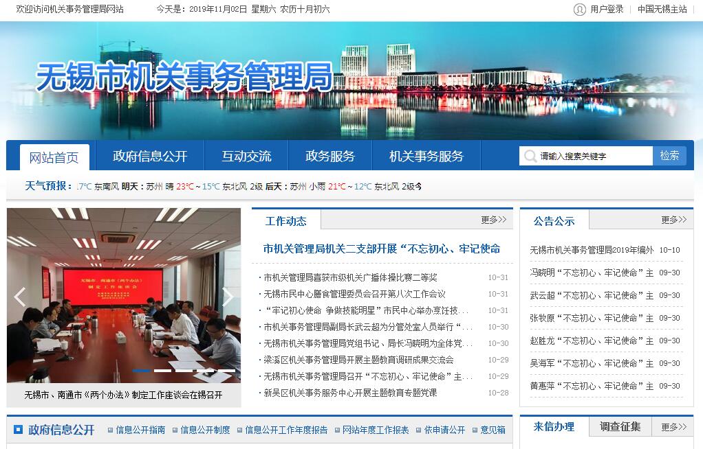 无锡市机关事务管理局主要职责:(一)贯彻执行机关事务管理方面的政策,拟订市级机关事务管理规划、计划和制度并组织实施;负责市级机关事务管理、保障和服务工作,指导全市行政机关事务管理工作。(二)根据财政集中支付的要求,负责管理范围内的市级机关、事业单位行政经费的集中支付、核算、审核等管理工作,按规定指导市级机关、事业单位会计事务工作。(三)加强管理范围内的市级机关、事业单位的国有资产管理工作。负责管理范围内的市级机关、事业单位办公用房项目初审、统一规划、投资建设、装修改造、使用调配的集中管理工作;负责管理范围内的市级机关、事业单位办公设备、办公家具的配备更新、清查登记、统计汇总及日常管理工作;负责外宾赠送市领导和各部门礼品的管理工作;负责编制管理范围内的市级机关、事业单位办公区楼宇智能化建设规划并组织实施;在市管理节能工作的部门指导下,负责市级公共机构节能工作,推进、指导、协调、监督全市机关公共机构节能工作。(四)负责市委、市人大、市政府、市政协四套班子机关及市民中心办公区的行政事务、环境秩序、生活服务和安全保卫的管理工作;负责管理范围内的市级机关公务车辆的车辆牌证、定点维修管理工作。(五)参与拟订机关后勤管理体制改革政策;组织实施并监督管理范围内的机关、事业单位后勤服务社会化工作;组织开展全市机关后勤业务交流工作;负责组织有关市级机关、事业单位后勤服务岗位培训工作。(六)负责市级领导干部后勤服务保障工作。拟订市级领导干部服务保障有关规章制度并组织实施;负责市级领导干部、已退出领导岗位的市级以上领导干部及有关服务对象的生活服务工作;负责市级领导干部周转房的集中建设与服务管理工作;负责易地交流市级领导干部住房安排管理的具体工作。(七)参与市级机关住房制度改革的有关组织实施工作,承办相关的住房货币化补贴分配工作。(八)配合有关部门做好机关政府集中采购工作,履行采购人代表职责,负责市级协议供货和定点采购项目的具体委托事项。(九)承办市委、市人大、市政府、市政协交办的其他事项。