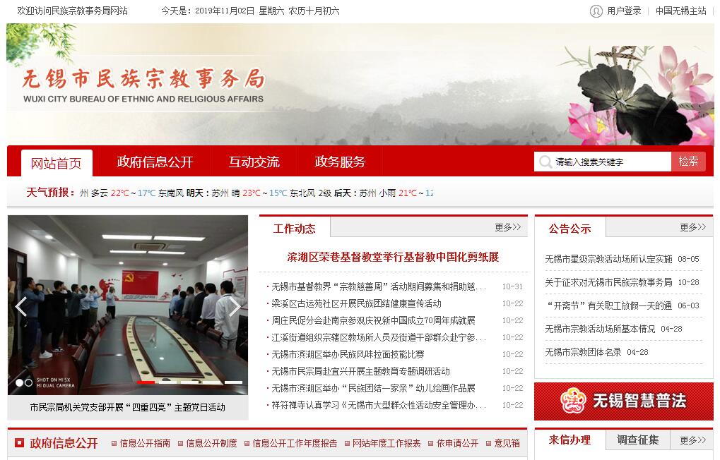 无锡市民族宗教事务局是无锡市人民政府组成部门。其主要职责是:(一)贯彻执行中央关于民族宗教工作的方针、政策和有关法律法规,组织开展民族宗教理论、政策和工作重大问题的调查研究,提出有关政策建议。(二)开展民族宗教法律法规和政策的宣传教育工作,督促检查民族宗教法律法规和政策的执行情况。承担民族宗教事务行政审批、行政复议和行政诉讼工作。组织协调网络宗教事务管理,规范网络宗教信息服务。协调推动有关部门履行民族宗教工作相关职责。(三)推进实施民族宗教事务服务体系和民族宗教事务管理信息化建设。(四)会同有关部门管理少数民族专项资金,会同有关部门做好少数民族扶贫工作,协助有关部门加强对生产销售清真食品企业的扶持和管理,落实少数民族特需商品生产和供应工作。(五)依法保护少数民族公民的合法权益,根据上级要求开展民族团结进步创建活动,协助有关部门做好培养选拔少数民族干部工作。(六)依法履行宗教事务管理职责,依法保护公民宗教信仰自由和正常的宗教活动。(七)指导宗教团体依法依章开展活动,引导各宗教坚持中国化方向,支持宗教团体加强自身建设,推动宗教团体在宗教界开展爱国主义、社会主义、拥护祖国统一和民族团结的自我教育,办理宗教团体需由政府解决和协调的有关事务。(八)指导全市负责民族宗教事务的部门依法履行管理职责,协调处理民族宗教事务的重大事项,防范利用宗教进行的非法、违法活动,抵御境外利用宗教进行的渗透活动。(九)负责对涉及宗教文物、文化资产的相关管理工作,协调宗教团体、宗教活动场所承办与发展无锡宗教文化、旅游事业相关的事宜。牵头协调承办世界佛教论坛相关工作。(十)负责宗教方面的对外交流归口管理工作,指导全市负责民族宗教事务的部门和宗教界开展对外以及对港澳台的宗教交往活动。(十一)按照职责分工做好相关行业、领域的安全生产监督管理工作。(十二)完成市委市政府、市委统战部交办的其他任务。
