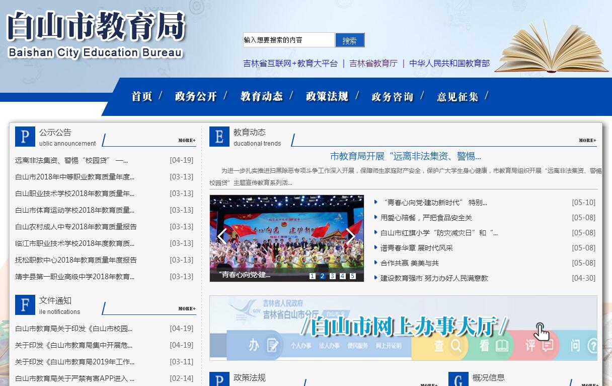 根据《中共吉林省委办公厅、吉林省人民政府办公厅关于印发〈白山市人民政府机构改革方案〉的通知》(吉厅字〔2009〕21号),设立市教育局,为市政府工作部门。其主要职责是:(一)贯彻执行党和国家的教育方针、政策和法律法规。拟订全市教育改革与发展的规划和规范性文件,经批准后监督执行。(二)负责各级各类教育的统筹规划和协调管理,执行各级各类学校设置标准的实施办法,指导各级各类学校的教育教学改革。负责教育基本信息的统计、分析、上报和发布。(三)负责推进义务教育均衡发展和促进教育公平,负责义务教育的宏观指导与协调,指导普通高中教育、幼儿教育和特殊教育工作。制定基础教育教学基本要求和教学基本文件,组织审定地方补充教材,全面实施素质教育。(四)指导全市的教育督导工作,负责组织和指导对中等及中等以下教育、扫除青壮年文盲工作的督导检查和评估验收工作,指导基础教育发展水平、质量的监测工作。(五)指导以就业为导向的职业教育的发展与改革,制订中等职业教育教学指导文件,指导中等职业教育教材建设和职业指导工作。指导市高等职业教育发展与改革。统筹指导各类继续教育。(六)统筹和指导全市少数民族教育工作,协调对少数民族和少数民族地区的教育援助。(七)统筹管理本级教育经费,监测各县(市、区)教育经费的筹措和使用。会同市有关部门制定筹措教育经费、教育拨款、考核基建投资的办法和原则。按规定管理国内、外对全市的各项教育援助和教育投入。(八)指导全市学校党建、纪检、统战、群团工作,负责市属学校和单位的干部队伍建设和党务工作。(九)指导各级各类学校的思想政治工作、德育工作、体育卫生与艺术教育工作及国防教育工作。协调并指导各级各类学校的安全文明校园建设工作、社会治安综合治理工作和稳定工作。(十)主管全市的教师工作,负责实施教师资格制度,指导教育系统人才队伍建设。根据国家颁布的各级各类学校编制标准,会同有关部门做好编制管理工作。统筹规划各级各类学校教师和管理人员队伍建设。(十一)统筹管理学历教育的招生考试和学籍管理工作。制定中小学招生政策和招生计划。(十二)贯彻执行国家语言文字工作的方针、政策。指导推广普通话和语言文字规范化、标准化工作。(十三)指导有关教育学会、协会、基金会等社团组织的工作。(十四)承办市政府交办的其他工作。