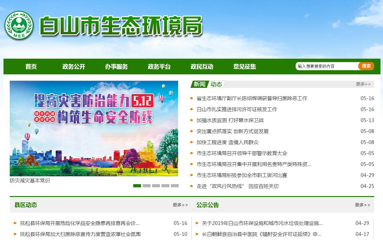 白山市生态环境局主要职责:(一)负责建立健全生态环境基本制度。会同有关部门拟订全市生态环境政策、规划并组织实施,起草生态环境地方性法规和市政府规章草案。会同有关部门编制并监督实施重点区域、流域、饮用水水源地生态环境规划和水功能区划,组织实施生态环境标准,落实生态环境基准和技术规范。(二)负责辖区内重大生态环境问题的统筹协调和监督管理。牵头协调辖区内重特大环境污染事故和生态破坏事件的调查处理,指导协调各县(市、区)政府对重特大突发生态环境事件的应急、预警工作,牵头指导实施生态环境损害赔偿制度,协调解决全市跨区域环境污染纠纷,统筹协调全市重点区域、流域生态环境保护工作。(三)承担落实国家、省和市减排目标的责任。组织实施各类污染物排放总量控制、排污许可证制度,确定大气、水等纳污能力,提出实施总量控制的污染物名称和控制指标,监督检查各县(市、区)污染物减排任务完成情况,实施生态环境保护目标责任制。(四)负责提出生态环境领域固定资产投资规模和方向、全市财政性资金安排的意见,按规定权限审批、核准全市规划内和年度计划规模内固定资产投资项目,配合有关部门做好组织实施和监督工作。参与指导推动循环经济和生态环保产业发展。(五)负责全市环境污染防治的监督管理。组织实施大气、水、土壤、噪声、光、恶臭、固体废物、化学品、机动车等的污染防治管理工作。负责排污口设置管理和地下水污染防治工作。会同有关部门实施流域水环境保护工作。会同有关部门监督管理饮用水水源地生态环境保护工作,组织指导城乡生态环境综合整治工作,监督指导农业面源污染治理工作。监督指导区域大气环境保护工作,组织实施区域大气污染联防联控协作机制。(六)指导协调和监督生态保护修复工作。组织编制生态保护规划,监督对生态环境有影响的自然资源开发利用活动、生态环境建设和生态破坏恢复工作。组织制定各类自然保护地生态环境监管制度并监督执法。监督野生动植物保护、湿地生态环境保护、沙化、盐渍化、草地退化防治等工作。指导协调和监督农村生态环境保护,监督生物技术环境安全,牵头生物物种(含遗传资源)工作,组织协调全市生物多样性保护工作,参与生态保护补偿工作。(七)负责核与辐射安全的监督管理。落实国家有关政策、规划、标准,负责全市核安全工作协调机制有关工作,参与核事故应急处理,负责辐射环境事故应急处理工作。监督管理核设施和放射源安全,监督管理核设施、核技术应用、电磁辐射、伴有放射性矿产资源开发利用中的污染防治。对核材料管制和民用核安全设备设计、制造、安装及无损检验活动实施监督管理。(八)负责生态环境准入的监督管理。受市政府委托对重大经济和技术政策、发展规划以及重大经济开发计划进行环境影响评价。按国家规定审批或审查重大开发建设区域、规划、项目环境影响评价文件。拟订并组织实施生态环境准入清单。(九)负责生态环境监测工作。贯彻落实国家、省生态环境监测制度、规范和相关标准,并监督检查执行情况。会同有关部门统一规划生态环境监测站点设置,组织实施污染源监督性监测、温室气体减排监测、应急监测。组织建设和管理全市生态环境监测网和生态环境信息网,实行生态环境质量公告制度,统一发布全市生态环境综合性报告和重大生态环境信息。(十)负责应对气候变化工作。组织拟订全市应对气候变化及温室气体减排规划和政策。负责全市履行联合国气候变化框架公约相关工作。(十一)配合组织开展生态环境保护督察。建立健全市生态环境保护督察制度,协调市直各部门、县(市、区)党委和人民政府配合中央和省生态环境保护督察,督促推进督察整改,按照权限依法依规进行问责。(十二)统一负责生态环境监督执法。组织开展全市生态环境保护执法检查活动。查处重大生态环境违法问题。指导全市生态环境保护综合执法队伍建设和业务工作。(十三)组织指导和协调全市生态环境宣传教育工作,组织实施全市生态环境保护宣传教育纲要,推动社会组织和公众参与生态环境保护。开展生态环境科技工作,组织生态环境重大科学研究和技术工程示范,推动生态环境技术管理体系建设。(十四)开展生态环境对外合作交流,研究提出国际生态环境合作中有关问题的建议,组织协调全市有关生态环境国际条约的履约工作,参与处理涉外生态环境事务。(十五)承担生态环境行业领域的安全生产管理职责,指导督促企事业单位加强安全管理。依照有关法律、法规的规定履行安全生产监督管理职责,开展监管执法工作。负责本部门推进依法行政、建设法治白山等相关工作。(十六)完成市委、市政府交办的其他任务。(十七)职能转变。按相关法律法规落实生态环境保护责任,组织开展相关监督管理。全面落实大气、水、土壤污染防治行动计划,大幅减少进口固体废物种类和数量直至全面禁止洋垃圾入境。落实“管发展必须管环保,管生产必须管环保”要求,实行领导班子成员“一岗双责”,形成齐抓共管工作格局,实现发展与生态环境保护内在统一、相互促进,构建政府为主导、企业为主体、社会组织和公众共同参与的生态环境治理体系。实行最严格的生态环境保护制度,严守