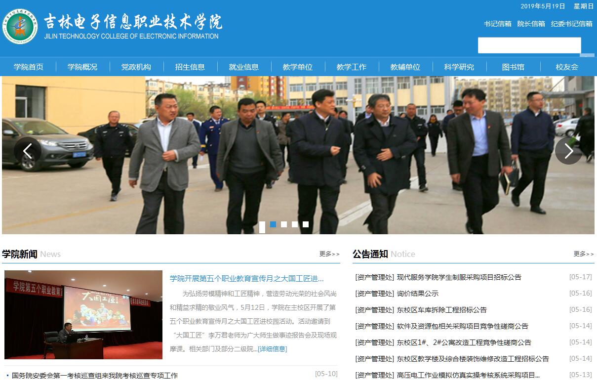 吉林电子信息职业技术学院是国家教育部备案、吉林省教育厅直属的高职学院,是吉林省示范性高职学院。学院坐落在全国魅力城市——吉林省吉林市。学院始建于1964年,时称“吉林有色金属工业学校”,后又名“中国黄金矿产公司吉林中等技术学校”(简称“黄金学校”),1970年更名为“吉林冶金工业学校”,2002年独立升格为高等职业技术学院。学院现有两个校区,占地面积510亩,总建筑面积近16万平方米;教职工485人,其中,教授37人,副教授等副高级职称的教师109人,享有国务院特殊津贴人员2人,长白山技能名师10人,宝钢教育奖优秀教师2人,吉林省黄炎培职业教育奖杰出教师1人,省级教学名师2人,吉林省优秀教师1人,吉林省职业教育先进个人2人,“双师型”教师158人,省级优秀教学团队6个。学院设有财经学院、电气工程学院、机械工程学院、建筑工程学院、汽车工程学院、现代服务学院、信息技术学院,思想政治理论课教学部、体育部、创新创业与素质教育中心和冶金研究所,共7个二级院、2个教学部、1个中心、1个研究所等11个教学单位,在校生近万人。学院树立了“学院工作以教学工作为中心、教学工作以学生为中心”的指导思想,坚持就业的导向地位,不断深化教育教学改革,努力提高教育教学质量。学院着力打造专业特色鲜明、师资力量雄厚、实习实训条件优越、就业有保障、学生有作为的品牌专业。现有机电一体化技术、电气自动化技术、移动通信技术、机械设计与制造、电子商务、高速铁路客运乘务、工程造价等45个招生专业。其中,电气自动化技术专业为教育部装备制造类专业示范点;自动化专业群、电子信息专业群、机械制造技术专业群、电子商务专业群、移动通信技术专业、会计专业被确定为吉林省高水平专业(群)立项建设;工业机器人技术、酒店管理、移动通信技术、焊接技术及自动化4个专业被吉林省教育厅批准为现代学徒制试点专业;金属矿开采技术专业被确定为省级特色专业;自动化专业群、电子信息专业群,移动通信技术专业被确定省级品牌专业建设项目;自动化专业群、矿业工程类专业群、冶金技术专业群、电子信息专业群、涉外旅游专业群等5个专业群被确定为“十二五”省级特色专业群;软件技术专业被确定为国家紧缺人才培养试点专业;电气自动化技术、机电一体化技术、冶金技术、涉外旅游、计算机网络技术、工业生产过程自动化技术等6个专业被确定为省级示范专业;我院被教育部批准为第三批现代学徒制试点单位。学院坚持“以服务为宗旨,以就业为导向”的办学方针,先后与中国一汽、中国北车长春轨道客车、中金集团、大唐风电、武汉凯迪、中油化建、吉林钢铁、中国电信、中关村软件协会等700余家单位开展合作交流,并与中德诺浩、中兴通讯、上海大唐移动、东方领航、北京翔鹏、吉林启鸿等知名企业开展合作办学。同时,学院积极与德国柏林职教集团,韩国全州大学、韩国VISION大学、湖西大学,印度韦洛尔科技大学,新加坡南洋理工学院、西门子学院、ABB培训中心等国外知名教育机构广泛开展实质性国际交流与合作,开设汽车营销与服务、汽车检测与维修技术两个中外合作办学专业。学院于2016年加入中德职教联盟,并被确定为副理事长单位。同年,中德职教联盟吉林示范基地在我院落成。学院牵头组建了“北方旅游职业教育集团”和“北方冶金职业教育集团”。“中国钢铁工业协会东北培训基地”“全国服务外包技能考试吉林市培训中心”“吉林市大学生创业培训基地”等先后在我院建成。我院毕业生就业率连续多年达90%以上,被评为“吉林省普通高等学校就业工作先进集体”。学院积极服务地方经济发展,面向行业企业开展服务培训。先后为吉林省安监局、吉林建龙、鹿鸣矿业、夹皮沟矿业等单位开设业务骨干素质提升培训班,先后为长白山开发建设集团、长白县望天鹅风景区、夹皮沟金矿、红旗岭镍矿、大黑山钼矿、孟家岗铁矿等企业的科技开发项目提供了智力支撑。2015年12月,教育部同意在有色金属行业开展职业教育“走出去”试点。作为“全国有色金属行业职工继续教育基地”,我院将以面向中国有色矿业集团境外企业员工开展职业教育和培训为切入点,积极探索与中国企业和产品“走出去”相配套的职业教育发展模式,切实服务“一带一路”和国际产能合作。学院连续多年成功承办全国会计专业技术初级、中级职称无纸化考试,吉林省会计从业资格考试,吉林省施工现场管理人员考试、工程造价人员资格考试,大学英语、计算机、自学考试考点工作常态化开展。学院是吉林省首批设立职业技能鉴定训练基地院校之一,先后被确定为“国家职业技能鉴定基地”“吉林省职业技能鉴定基地”等,可鉴定工种达到57个。近年来,学院先后获得“全国高职高专人才培养工作水平评估优秀学校”“吉林省示范性高职院校”“吉林省职业教育先进单位”“吉林省精神文明建设先进单位”“吉林省依法治校示范校”“吉林省首届黄炎培职业教育优秀学校奖”“全国高职院校心理健康教育工作先进集体”“全国教育信息化建设示范基地”“吉林省普通高等学校就业工作先进集体”“吉林省高校档案工作评估优秀学校”“全省高校安全保卫工作先进单位”“吉林省职业技能鉴定先进单位”