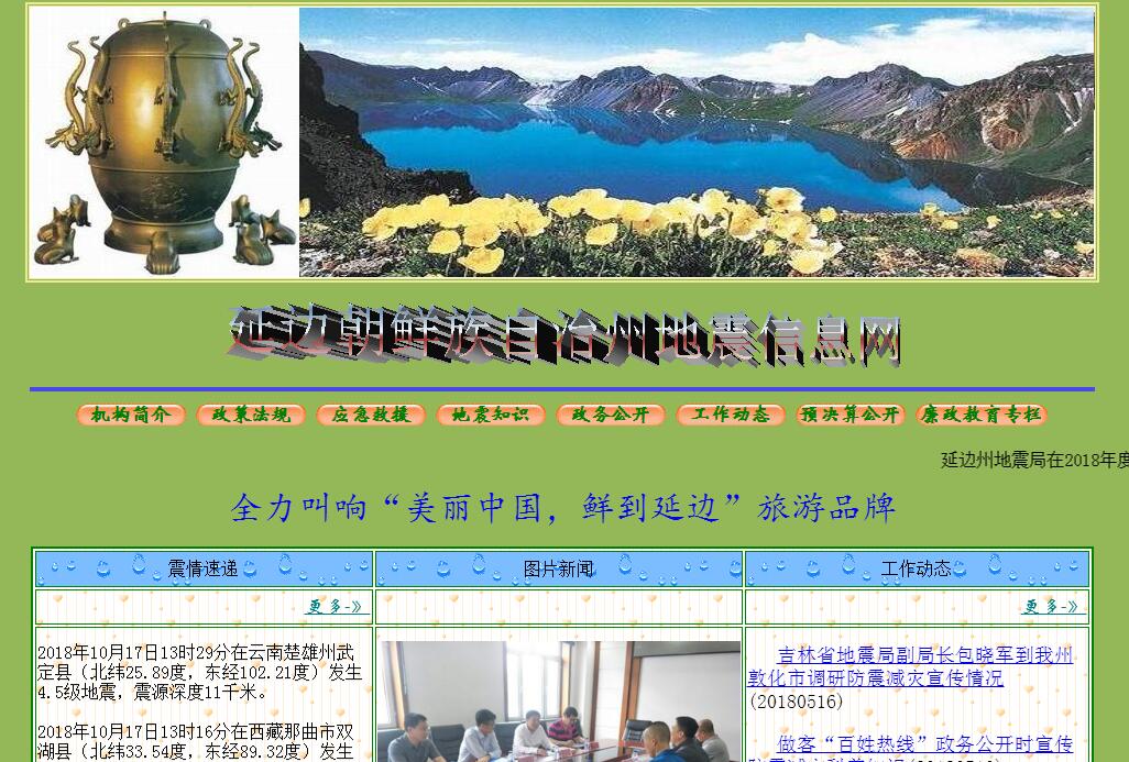 | 网站简介: 延边朝鲜族自治州地震局是隶属于延边朝鲜族自治州人民政府的公益一类事业单位。其主要职责是:一、组织实施防震减灾工作方针政策,法律法规和发展规划,并监督检查执行情况。二、建设全州地震(火山)监测网络,管理地震(火山)监测预报工作,依法保护地震(火山)监测设施和观测环境。三、管理监督全州建设工程抗震设防和地震安全性评价工作,组织地震(火山)灾害预测、防灾救灾、灾害调查和损失评估工作,组织开展防震减灾宣传教育工作。四、组织落实全州破坏性地震(火山)灾害应急预案,开展震情和灾情速报,承担州人民政府抗震救灾指挥部办事机构职能。五、管理全州地震(火山)科学技术合作交流与成果推广工作。六、管理监督全州地震行业质量与技术规范实施工作,承担全州地震行政执法、行政复议、行政诉公工作。七、指导(县)市防震减灾工作。八、完成州人民政府和上级地震部门交办的其他工作。 |