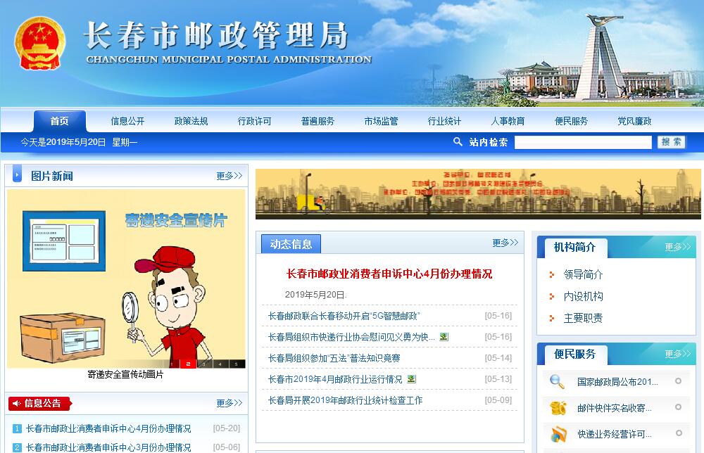 | 网站简介: 长春市邮政管理局主要职责是:贯彻执行国家邮政法律法规、方针政策和邮政服务标准,研究拟订本地区邮政发展规划,监督管理本地区邮政市场及邮政普遍服务和机要通信等特殊服务的实施,负责行业安全生产监管、统计等工作,保障邮政通信与信息安全,承办上级邮政管理部门和地方人民政府交办的其他事项。 |