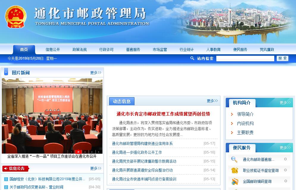 | 网站名称: | 通化市邮政管理局 | ||