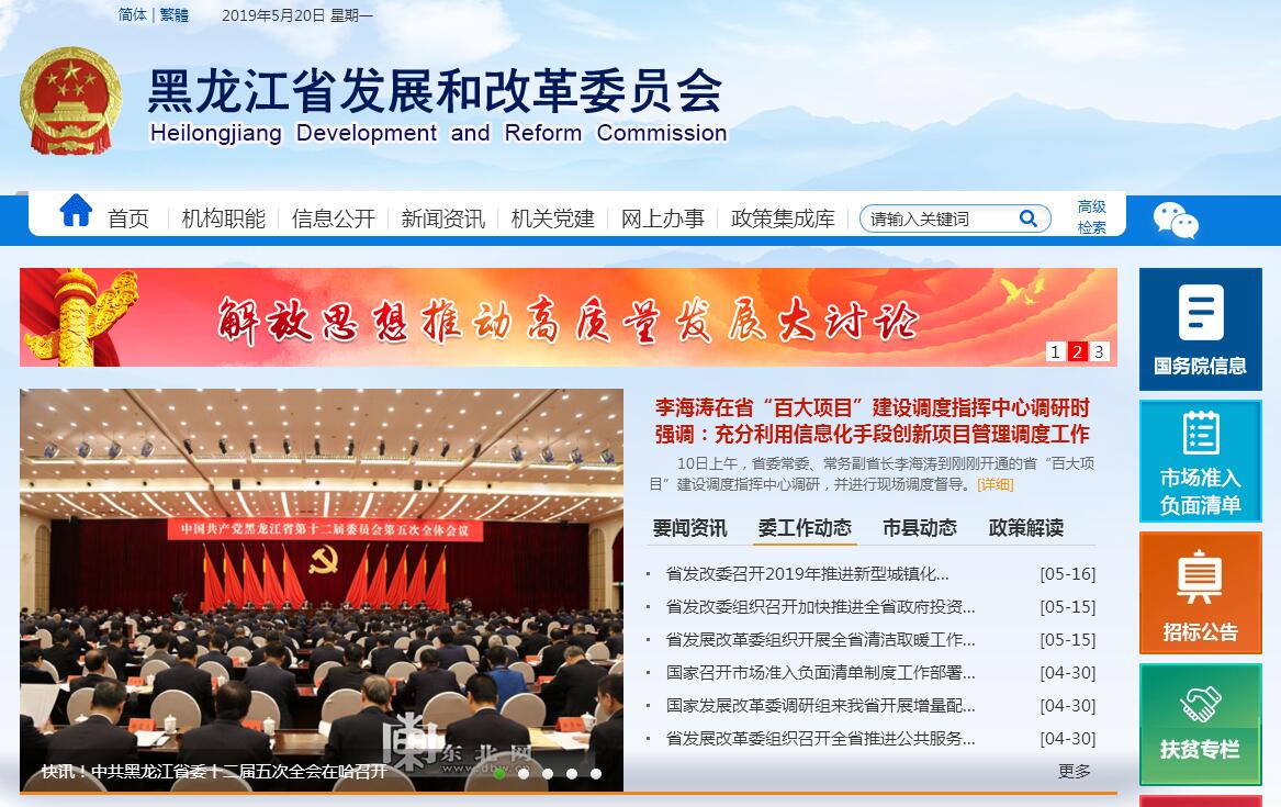 黑龙江省发展和改革委员会主要职责:(一)拟订并组织实施全省国民经济和社会发展战略、中长期规划和年度计划,统筹协调经济社会发展,研究分析国内外经济形势,提出全省国民经济发展、价格总水平调控和优化重大经济结构的目标、政策,提出综合运用各种经济手段和政策的建议,受省政府委托向省人大提交国民经济和社会发展计划的报告。(二)负责监测全省宏观经济和社会发展态势,承担预测预警和信息引导的责任,研究宏观经济运行、总量平衡、经济安全和总体产业安全等重要问题并提出宏观调控政策建议,负责协调解决经济运行中的重大问题,调节经济运行,负责组织重要物资的紧急调度和交通运输协调。(三)负责汇总分析全省财政、金融等方面的情况,参与制定财政政策和土地政策。综合分析财政、金融、土地政策的执行效果。负责全口径外债的总量控制、结构优化和监测工作。(四)承担指导推进和综合协调全省经济体制改革的责任,研究经济体制改革和对外开放的重大问题,组织拟订综合性经济体制改革方案,协调有关专项经济体制改革方案,会同有关部门搞好重要专项经济体制改革之间的衔接,指导经济体制改革试点和改革试验区工作。(五)承担规划全省重大建设项目和生产力布局的责任,拟订全省固定资产投资总规模和投资结构的调控目标、政策及措施,衔接平衡需要安排国家及省政府投资和涉及重大建设项目的专项规划。安排省本级财政性建设资金,按规定权限,审批、核准、审核重大建设项目、重大外资项目、境外资源开发类重大投资项目和大额用汇投资项目。指导和监督全省国外贷款建设资金的使用,引导民间投资的方向,研究提出利用外资和境外投资的战略、规划、总量平衡和结构优化的目标和政策。组织开展重大建设项目稽察。指导工程咨询业发展。(六)推进全省经济结构战略性调整。组织拟订综合性产业政策,负责协调第一、二、三产业发展的重大问题并衔接平衡相关发展规划和重大政策,做好与国民经济和社会发展规划、计划的衔接平衡;协调农业和农村经济社会发展的重大问题;会同有关部门拟订服务业发展战略和重大政策,拟订现代物流业发展战略、规划,组织拟订高技术产业发展、产业技术进步的战略、规划和重大政策,协调解决重大技术装备推广应用等方面的重大问题;承担全省水库移民安置和后期扶持工作。(七)承担组织编制全省主体功能区规划并协调实施和进行监测评估的责任,组织拟订振兴老工业基地、区域协调发展、西部地区开发及资源型城市转型、促进各经济区崛起的战略、规划和重大政策,研究提出城镇化发展战略和重大政策,负责地区经济协作的统筹协调。(八)承担全省重要商品总量平衡和宏观调控的责任,编制重要农产品、工业品和原材料进出口总量计划并监督执行,根据经济运行情况对进出口总量计划进行调整,拟订省级战略物资储备规划,负责组织省级战略物资的收储、动用、轮换和管理,会同有关部门管理国家粮食、棉花和食糖等储备。(九)负责全省社会发展与国民经济发展的政策衔接,组织拟订社会发展战略、总体规划和年度计划,研究提出全省人口发展战略、拟订并组织实施全省人口中长期规划及人口政策规定,参与拟订科学技术、教育、文化、卫生、民政等发展政策,推进社会事业建设,研究提出促进就业、调整收入分配、完善社会保障与经济协调发展的政策建议,协调社会事业发展和改革中的重大问题及政策。(十)推进可持续发展战略,负责全省节能减排的综合协调工作,组织拟订发展循环经济、全社会能源资源节约和综合利用规划及政策措施并协调实施,参与编制生态建设、环境保护规划,协调生态建设、能源资源节约和综合利用的重大问题,综合协调环保产业和清洁生产促进有关工作;组织拟订全省应对气候变化重大战略、规划和政策,负责相关工作。(十一)起草全省国民经济和社会发展、经济体制改革和对外开放的地方性法规和政府规章草案。按规定指导和协调全省招投标工作。(十二)组织编制全省国民经济动员规划、计划,研究国民经济动员与国民经济、国防建设的关系,协调相关重大问题,组织实施国民经济动员有关工作。承担全省交通战备的组织协调工作。(十三)拟订全省能源发展战略、产业政策并组织实施;提出相关体制改革建议;制定全省中长期煤炭、电力、新能源等能源规划,负责能源规划与全省国民经济和社会发展规划以及其它行业规划的衔接平衡;按规定权限负责煤炭、石油、天然气、电力(含核电)、新能源和可再生能源的产业管理;负责能源行业的节能、资源综合利用和重大示范工程;按规定权限,审批、核准、审核能源各行业固定资产投资项目;衔接能源生产建设和供需保障,负责能源预测预警及信息发布,参与能源运行调节和应急保障。(十四)承担省国防动员委员会、省振兴老工业基地领导小组、省节能减排及应对气候变化工作领导小组、省哈大齐工业走廊建设领导小组、省建设节约型社会领导小组、省哈大齐城际铁路建设领导小组、省与开发银行金融合作领导小组、省中俄原油管道项目建设协调领导小组的具体工作。(十五)承办省政府交办的其他事项。