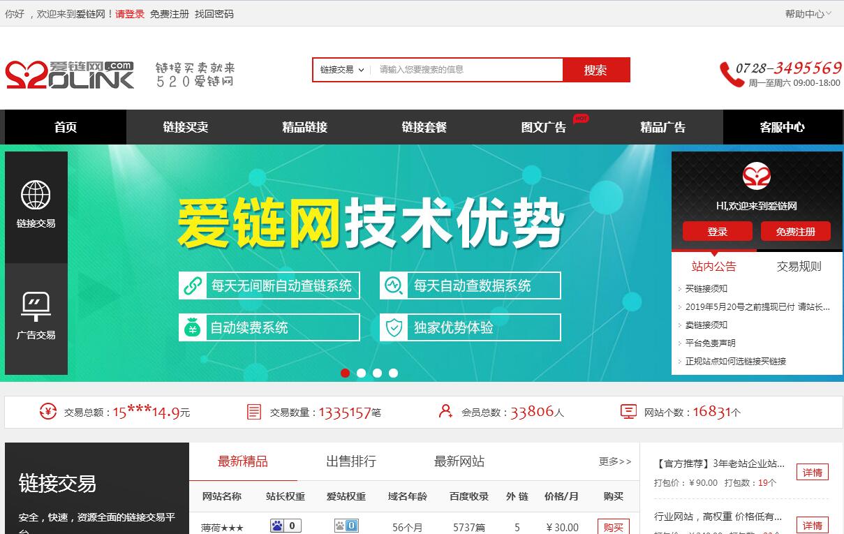 | 网站简介: 仙桃市新昊传媒有限公司2012年开始运营爱链网 www.520link.com。爱链网外链交易平台即(520link.com)诞生于2012年12月25日。爱链网外链交易平台是“网站友情链接交易平台”,它引入“网站友情链接是商品”的概念,让友情链接(外链)第一次作为商品呈现在站长交易市场里,方便快捷的满足广大站长外部链接建设的需求。 |