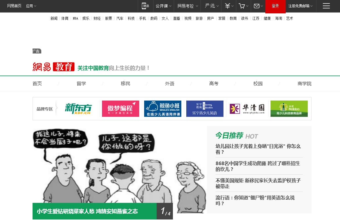 网易教育是最权威的教育类报道门户网站,包含有移民,留学,高考,外语,研究生,公务员,校园等教育产业资讯。