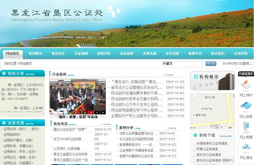 黑龙江省垦区公证处成立于2003年,现有工作人员9名,成立六年来,在总局党委和总局司法局的正确领导下,始终高举邓小平理论的伟大旗帜,坚持以党的十六大精神和邓小平理论及三个代表重要思想为指导,以服务人民、奉献社会为宗旨,以构建和谐社会为目标,从大局出发,积极服务中心工作,年办结公证1千多件,办结经济类公证涉及标的逾70亿元,为垦区的重大项目建设和龙头企业发展保了驾护了航,为群众关心、社会关注的焦点问题积极提供了优质公证服务。 垦区公证处一班人在自己的岗位上无私奉献,忠实履行职责,尽心尽力地展现公证职能作用,谱写了一曲爱岗敬业之歌,用自己的实际行动塑造了“敢打敢拼,勇创一流”的北大荒公证人精神,受到了垦区社会和业内的普遍好评。因此垦区公证处在农垦总局系统目标管理评比中连续数五年被评为“优胜单位”,先后被评为“垦区为经济建设服务先进集体”、“垦区司法行政系统先进集体”、“农垦总局人民满意政法单位”、“垦区级文明公证处”、荣立“集体三等功”一次、荣获农垦总局系统“青年文明号”先进集体。有三人次荣立农垦总局司法系统“个人三等功”,一人被树为垦区司法行政系统“十一面旗帜”先进个人标兵。在文明服务的道路上走出了自己坚实脚印。回顾过去,展望未来,垦区公证处将以“服务、质量、信誉”年活动为契机,积极提升服务能力和服务质量,弘扬良好的职业道德,通过拓展领域、丰富内容、加强管理、完善机制等措施,大力增强垦区公证处的社会公信力,为构建和谐垦区社会创造新的辉煌。