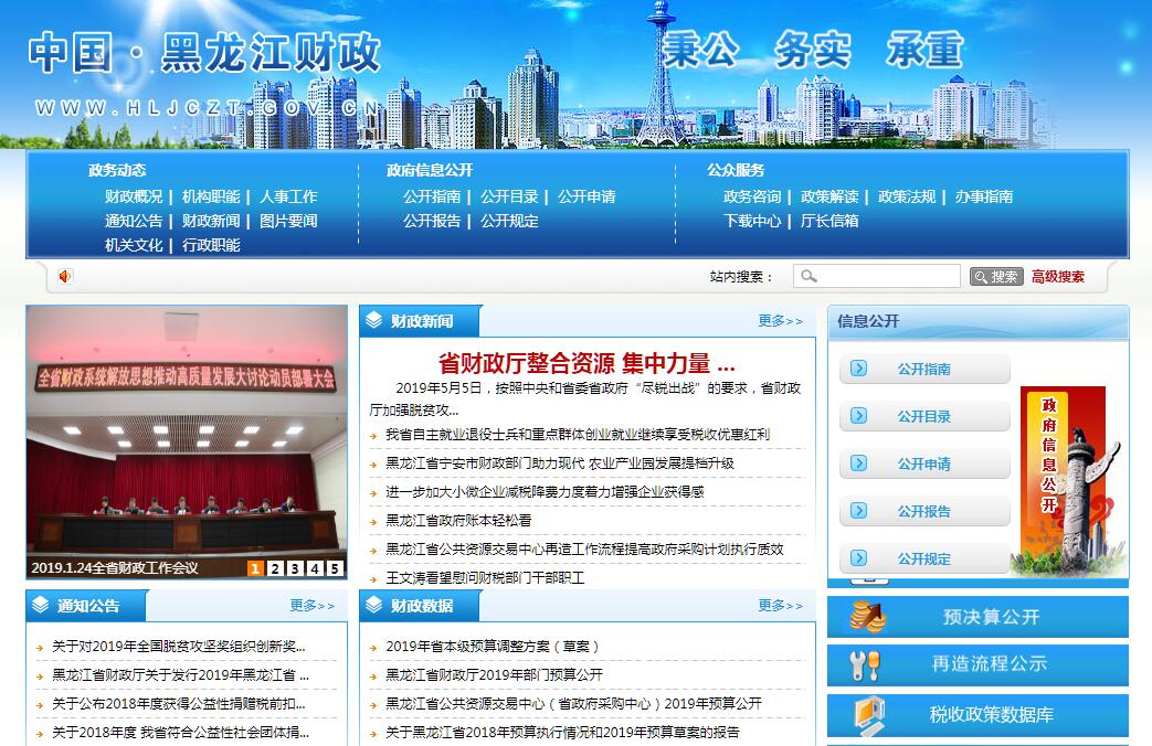 黑龙江省财政厅主要职责:(一)贯彻执行国家财税方针政策;研究拟订财政发展规划、财政改革方案及其有关政策并组织实施;分析预测经济形势,参与制定各项经济政策,提出运用财税政策实施经济调控和综合平衡社会财力的建议;牵头组织实施全省财源建设工作。(二)起草财政、地方税收、财务、会计和行政事业单位国有资产管理的地方性法规和省政府规章草案,制定有关规范性文件。(三)承担省本级各项财政收支管理的责任。负责编制年度省本级预决算草案并组织执行;受省政府委托,向省人民代表大会报告省本级和全省年度预算及其执行情况,向省人大常委会报告决算;组织制定经费开支标准、定额,负责审核批复部门(单位)的年度预决算。完善省对下财政转移支付制度。(四)负责地方政府非税收入管理,拟订政府非税收入管理有关制度和政策;负责政府性基金管理;按规定管理行政事业性收费;管理财政票据。(五)组织制定地方国库管理制度、国库集中收付制度,指导和监督全省国库管理工作,按规定开展国库现金管理工作。负责拟订政府采购制度并监督管理。(六)拟订有关地方性税收法规、规章实施细则和提出税收政策调整方案;根据全省国民经济和社会发展计划及财政预算安排,提出全省税收收入计划;根据国家授权,提出税种增减、税目税率调整、税收优惠和对全省财政影响较大的临时特案减免税的建议。(七)负责管理行政事业单位国有资产;制定需要全省统一规定的配置标准和有关政策;管理财政预算内行政机构、事业单位和社会团体的非贸易外汇收支。(八)负责审核和汇总编制全省国有资本经营预决算草案,制定国有资本经营预算制度和办法,收取省本级企业国有资本收益;制定并组织实施企业财务制度,按规定管理部分国有企业的国有资产;参与拟订企业国有资产管理相关制度;按规定管理资产评估工作。(九)负责办理和监督省本级财政的经济发展支出、省政府投资项目的财政拨款;参与拟订政府建设投资的有关政策,制定基本建设财务管理制度;负责有关政策性补贴和专项储备资金财政管理工作;负责农业开发管理工作。(十)会同有关部门管理省财政社会保障和就业及医疗支出;会同有关部门拟订社会保障资金(基金)的财务管理制度;编制省社会保障预决算草案。(十一)依法拟订地方政府性债务管理制度和办法,防范财政风险;统一管理政府的内外债务;负责地方金融企业国有资产管理和财务监管的相关工作。(十二)负责管理全省的会计工作。监督和规范会计行为;组织实施国家统一的会计制度;指导和监督注册会计师和会计师事务所的业务;指导和管理社会审计。(十三)监督检查财税法规、政策的执行情况,反映财政收支管理中的重大问题,提出加强财政管理的政策建议。(十四)承办省政府交办的其他事项。