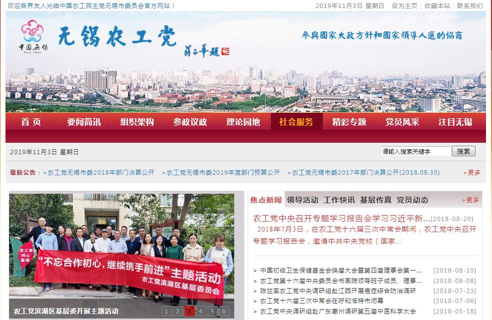 农工党在无锡地区的活动可以追溯到新中国成立前夕。上个世纪四十年代中、后期,就有农工党党员在无锡、常州、武进等地进行活动,1949年11月,中国农工民主党中央召开第五次全国干部会议,发表了宣言和决议,响应中共“五一宣言”,明确宣布接受中国共产党的领导,以《共同纲领》为本党的政治纲领。为响应农工党中央的号召,无锡农工党成员积极行动,为迎接新中国的建立进行了积极的工作。1949年底,农工党中央委员季方同志到南京负责进行华东地区农工党的党务整理工作。1950年10月,农工党江苏省工作委员会改建为苏南区党务整理委员会。1951年3月,苏南区党务整理委员会由南京迁至无锡,同年4月建立农工党无锡小组(组员6人)。1952年8月,扩建成立农工党无锡支部委员会。1953年3月,经农工党中央批复,正式成立农工党无锡市工作委员会。1954年6月19日,农工党无锡市第一次党员大会召开,农工党无锡市委正式成立。农工党无锡市委历届负责人有:管仲伟、阴景曙、秦达明、陆慧琴等。农工党无锡市委现任主委为韩晓枫,副主委:汤忠元(兼任秘书长)、唐家梁、张琦、夏加增。截止2016年12月31日,全市共有县级市委1个,基层组织89个(包括基层委员会7个,总支部2个,支部80个),党员总数1449人。