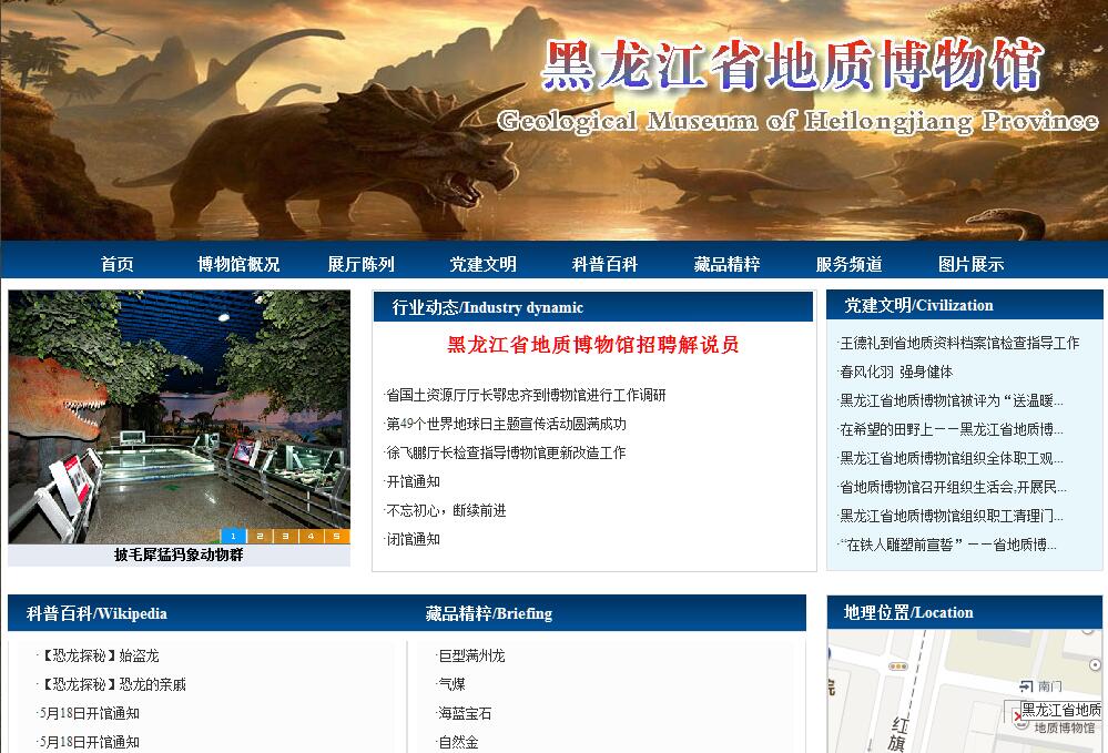 黑龙江省地质博物馆是全国科普教育基地,是集科研、科普为一体的地质矿产标本收藏展示中心。展馆位于哈尔滨市红旗大街263号,面积2211平方米,藏品五万余件,展出三千多件,展厅内博采大自然亿万年来演化的标本精华,汇集了黑龙江省丰富资源和锦绣奇观,采用声、光、电、多媒体、虚幻影像等现代技术,集中展示了黑龙江省地质的地域特色和科学研究成果,充分体现了地质勘查、矿业开发及国土资源管理对经济发展的重要作用,成为传播地学科普知识的窗口,增强了人们保护和珍惜国土资源意识、促进了人与自然的和谐发展。走进黑龙江省地质博物馆,如同翻开了地球46亿年来沧桑历史的壮美画卷。首先映入眼帘的是一厅锦绣龙江厅,全面介绍了黑龙江省的概况,通过大湿地、大草原、大森林、大耕地的实景模型展示了黑龙江省的秀丽风光和丰富的自然资源情况。大型电动的黑龙江省国土资源沙盘及背景的环形投影屏幕配合同步播放录像片和解说的形式展示全省的交通、行政区划及各种自然资源情况。自控的抬升和错动显示了著名的满洲里----绥芬河地学大剖面。这种切割剖面的展示手段,新颖独特、国内首创。二厅地质矿产厅,从地质工作、金属矿产、能源矿产、非金属矿产、地热及地下水资源几个方面展开。以电子显示模型显示了黑龙江省25亿年来的地壳演变及重要矿产的形成规律,厅内展示了重达四吨的大煤块,是迄今为止国内展厅中最大的一块煤标本,以电动模型的形式展示了世界最大的陆相油田——大庆油田。三厅岩石矿物厅,利用大型景观模型揭示了三大岩类的相互转换,采用玻璃通透式的手段和镶嵌墙体上的晶洞,展现省内外多姿异彩的岩石和矿物及传承古代文明的四大观赏石和四大名砚。观众可通过4台立体镜观察矿物及其内部的包裹体、裂纹等现象,也可以利用两组虚幻影像触摸宝石和玉器。四厅地质环境厅,通过五大连池火山、伊春小兴安岭花岗岩石林、嘉荫茅兰沟等微缩景观展现了地质公园的旖旎风光。利用声、光、电手段演示了五大连池火山喷发及火山地貌特征的情景,用模型和图片诠释了地质灾害的形成和对人类生活所造成的危害。五厅地层古生物厅,以虚拟影象、旋转展台、电动螺旋模型、灯箱展板,配合大量的化石标本,向观众介绍了五亿年来黑龙江的沧桑巨变和地层古生物演化的过程。六厅恐龙厅,以古生态复原壁画、景观、模型、虚拟影像、地台、恐龙化石骨架、实物标本相结合的方式,全面、系统地向观众介绍了在地质历史时期恐龙的兴衰史。其中展出的十一米长的鸭嘴龙是我省嘉荫出土的鸭嘴龙中最大的一具。七厅猛犸象----披毛犀厅,用大型壁画配合骨架和实景,展示了该时期古生态环境,特别是在第四纪的松嫩平原上,这块当时被周围茂密森林包围的草原,曾经是猛犸象、披毛犀的天下。地质博物馆收藏的重要矿产有七台河的气煤,大庆的石油,罗北的石墨,矽线石,东宁岩金,讷河的黄粘土,多宝山斑岩铜矿石,呼玛的砂金、狗头金;宝玉石类有山东的金刚石、石榴子、刚玉,缅甸的翡翠,辽宁的岫玉,新疆的和田玉,云南的海蓝宝石、自然银;文房四宝有端砚、歙砚、澄泥砚、红丝砚;古生物化石有黑龙江满洲龙骨架,禄丰龙骨架,董氏乌拉嘎龙化石、鄂伦春黑龙化石,鸡西的鱼、龟,龙江的中国蜓、蜘蛛,第四纪有猛犸象、披毛犀、东北野牛、原始牛、普氏野马等骨架及化石。还有专家捐赠的南极石、墨西哥的三叶虫。博物馆展厅广泛使用了通俗易懂的展板和图文、影视资料,配备等离子电视和可供查询相关科普知识的多媒体触摸屏,设立了六处形象逼真的高科技虚拟影像。开辟了科普知识互动区,通过亲自观察、动手实验、场景模拟、创新游戏等活动,增强知识的趣味性。安装了先进的中英文双语的语音导览系统,建有宣传、展示场馆设施和科普内容的网站。专家免费为观众检测或鉴定岩石矿物或古生物化石标本,为群众答疑解惑,辨明真伪。现有专(兼)职的讲解人员8人,青年志愿者10人,配有多功能科普活动室和影像厅,方便对青少年进行科普讲讲座,充分发挥博物馆的社会教育功能。黑龙江省地质博物馆主要职责:一、承担国内外及本省重要国土资源工作成果、岩矿石、古生物化石研究与相应的标本采集、收集、整理、研究、保护和展示。二、承担地学科普知识宣传工作。三、承担地学研究及学术交流活动。四、负责博物馆信息化建设工作。五、研究拟定本馆的发展规划。